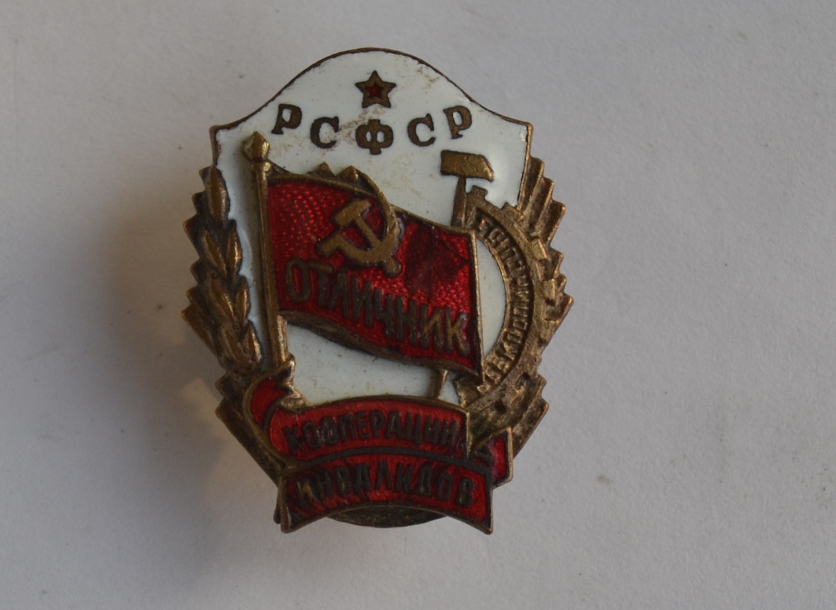 ЗНАК ОТЛИЧНИК КООПЕРАЦИИ ИНВАЛИДОВ РСФСР