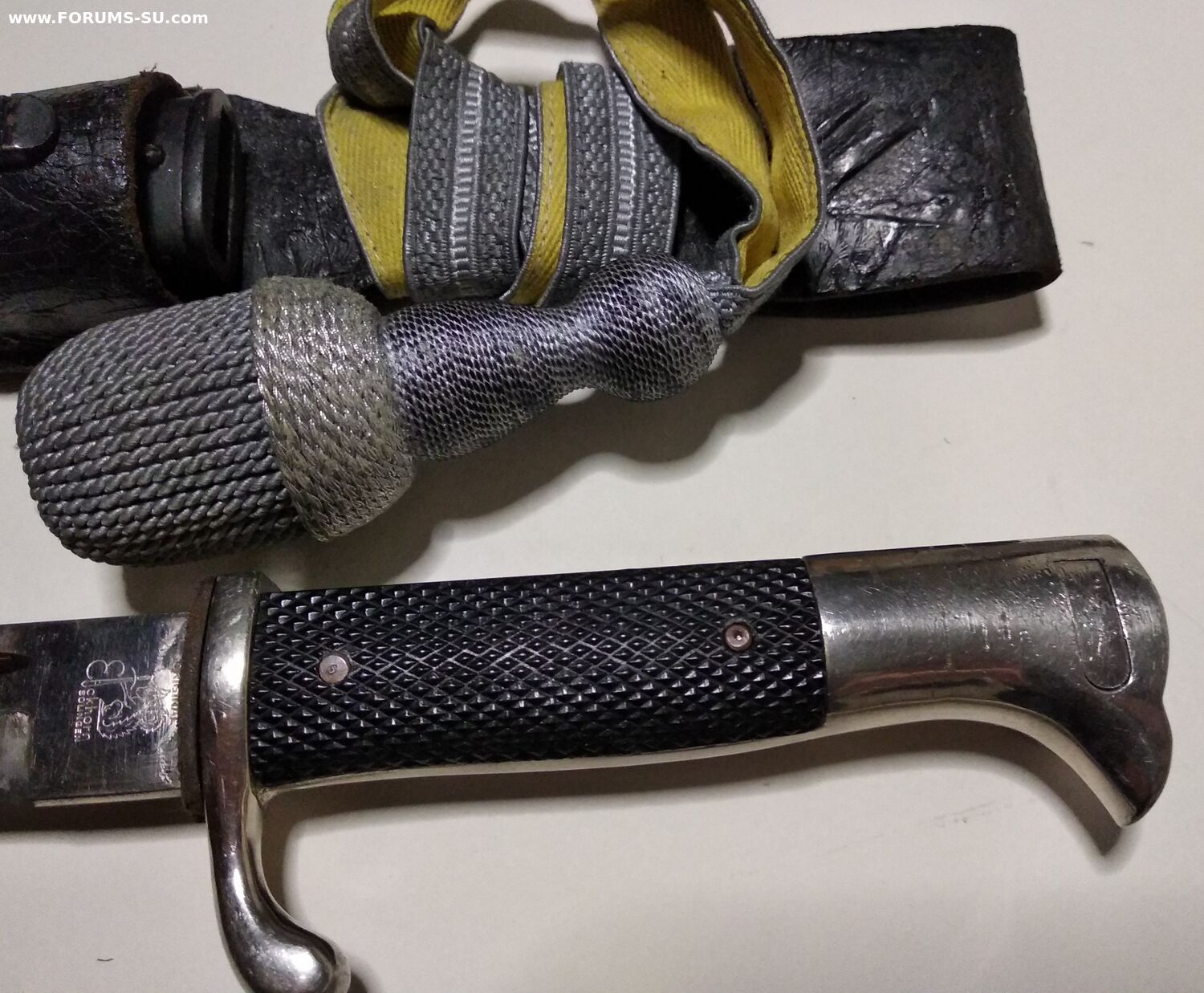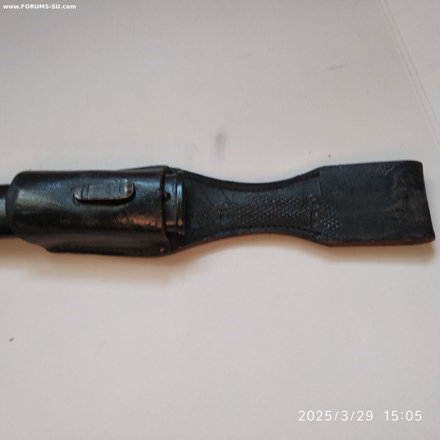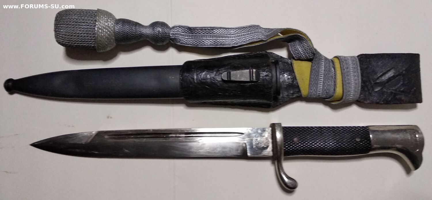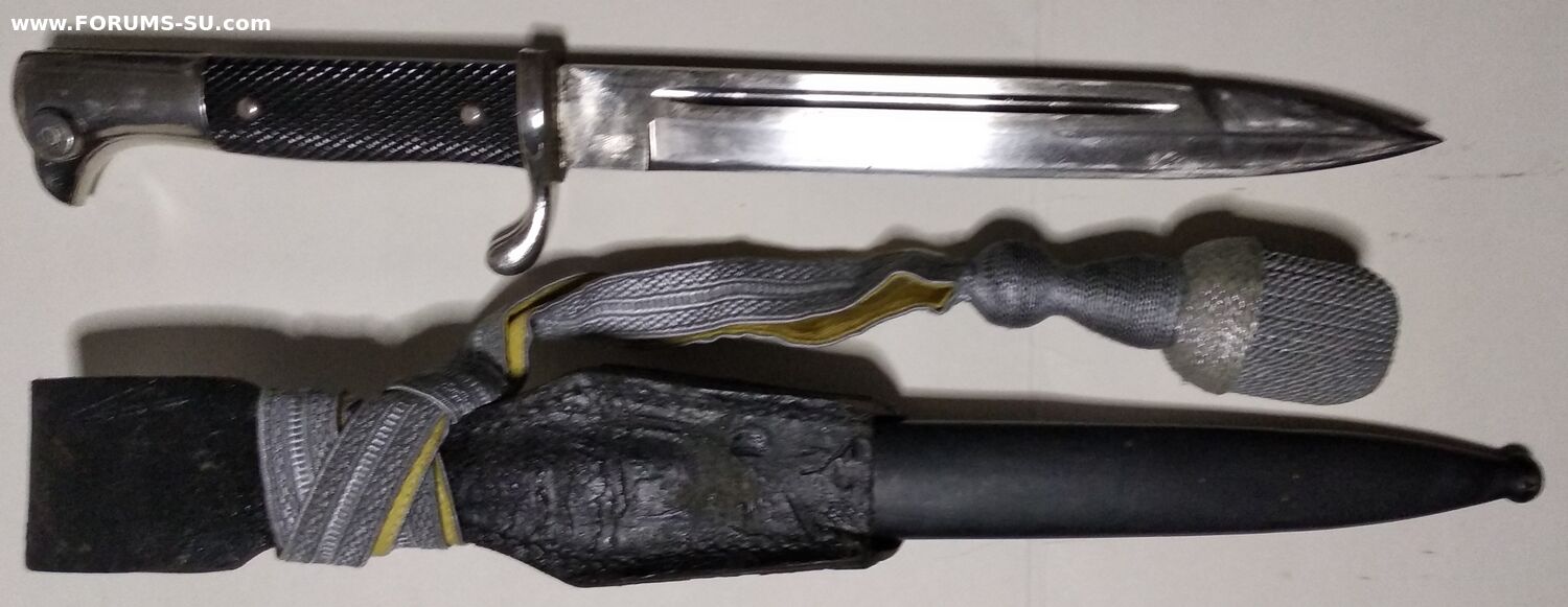 Так называемый внестроевой, "парвдный", обр 1998г. Не идеал, но в очень приличном состоянии, всеми любимая Белочка. Кожа не дубовая ( но ей скоро век), кнопка рабочая, темляк с металлизацией, ножны не перекрашены. Без реставраций и рукоделий. Техклейм и маркировок не обнаружил.