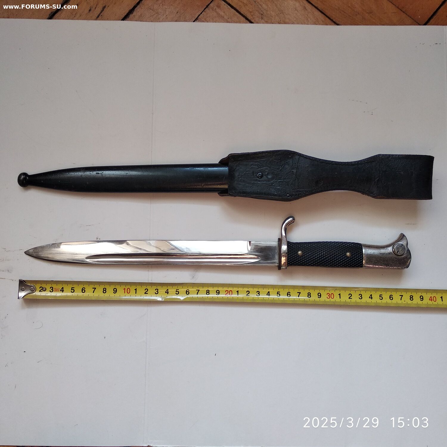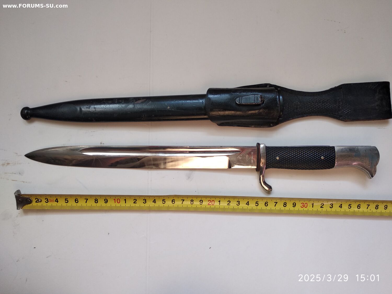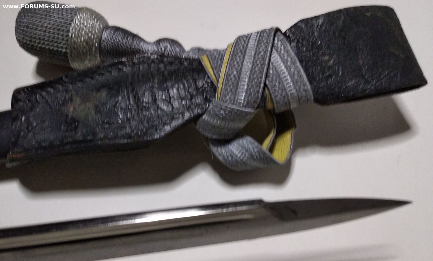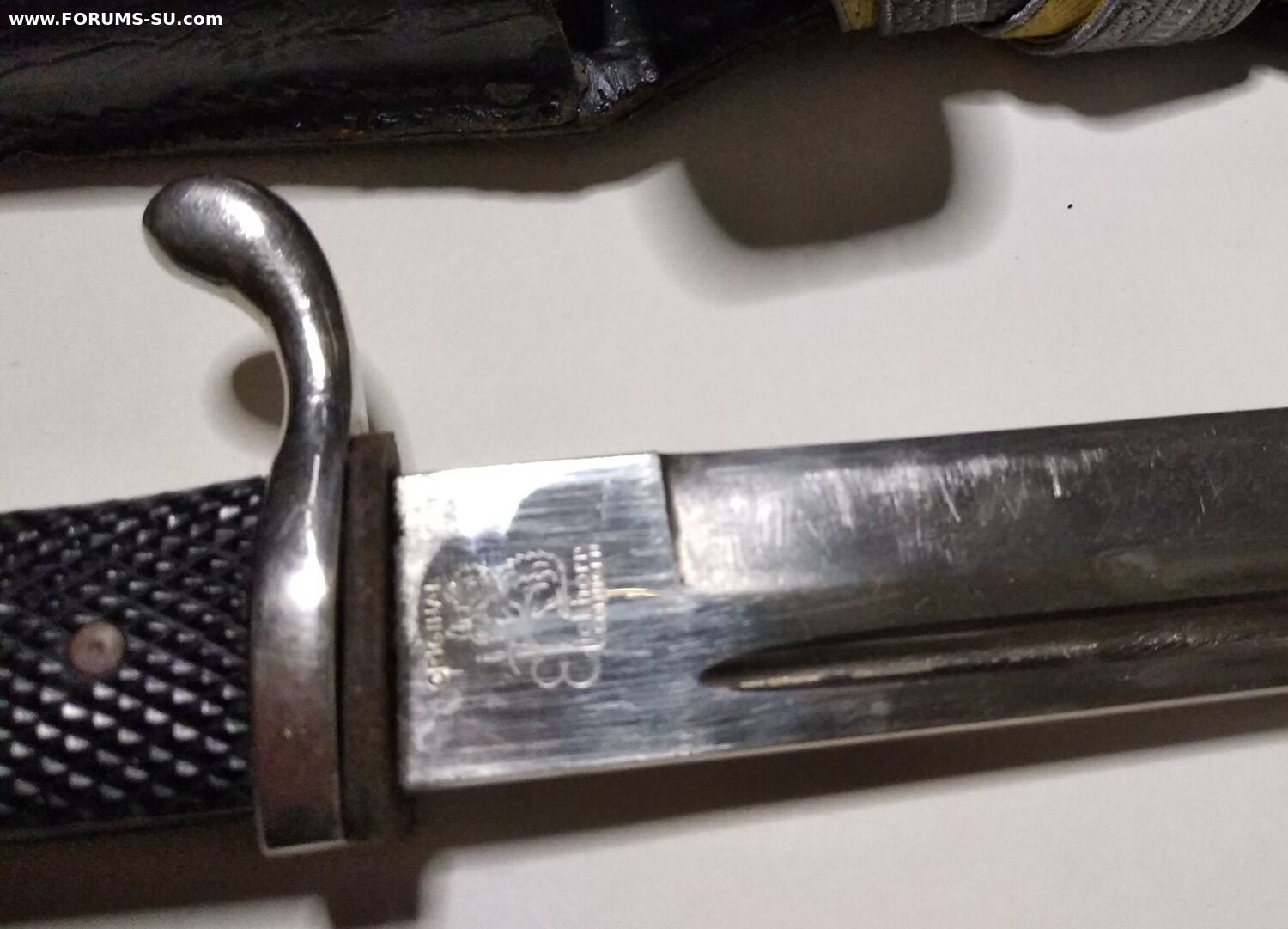 Так называемый внестроевой, "парвдный", обр 1998г. Не идеал, но в очень приличном состоянии, всеми любимая Белочка. Кожа не дубовая ( но ей скоро век), кнопка рабочая, темляк с металлизацией, ножны не перекрашены. Без реставраций и рукоделий. Техклейм и маркировок не обнаружил.