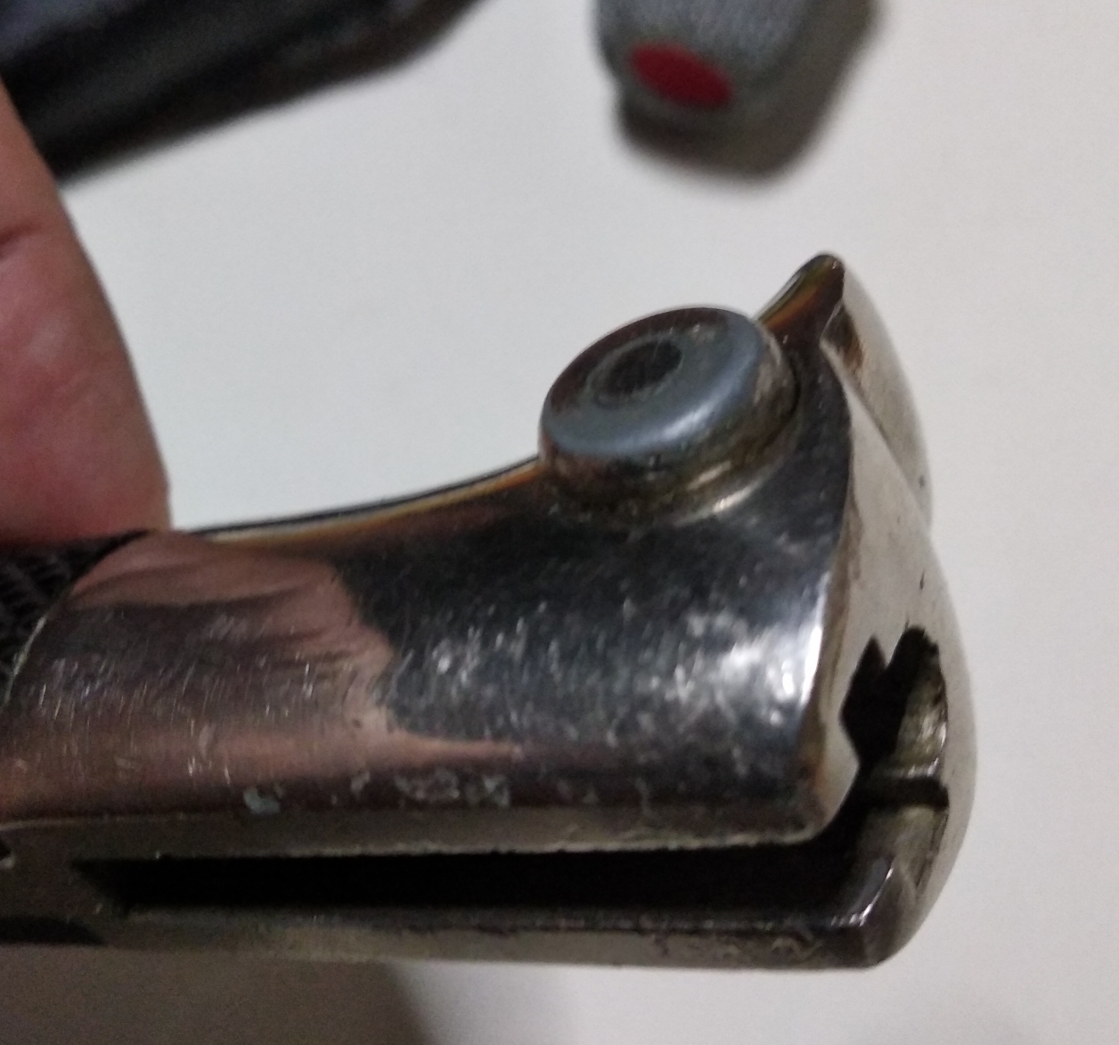 Недостатки: заточен очень остро, есть вмятины на ножнах, потерся никель на кнопке, есть забоинки от ношения по никелю (все на фото).