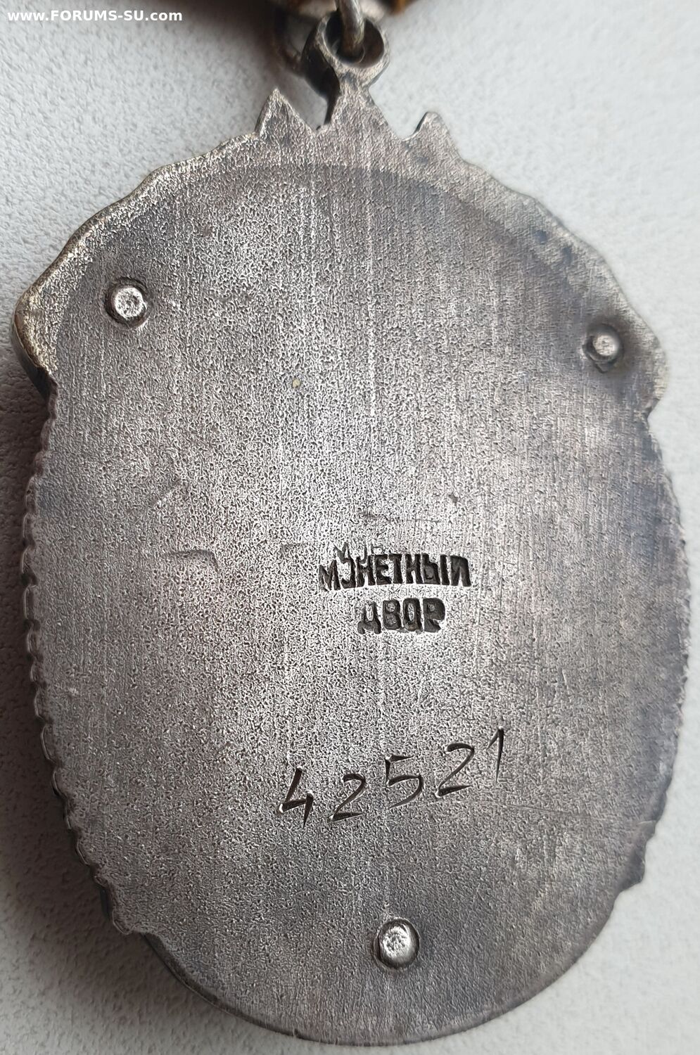 Двойной удар в клейме в слове "монетный". На реверсе видны очертания фигуры, похожей на звезду.