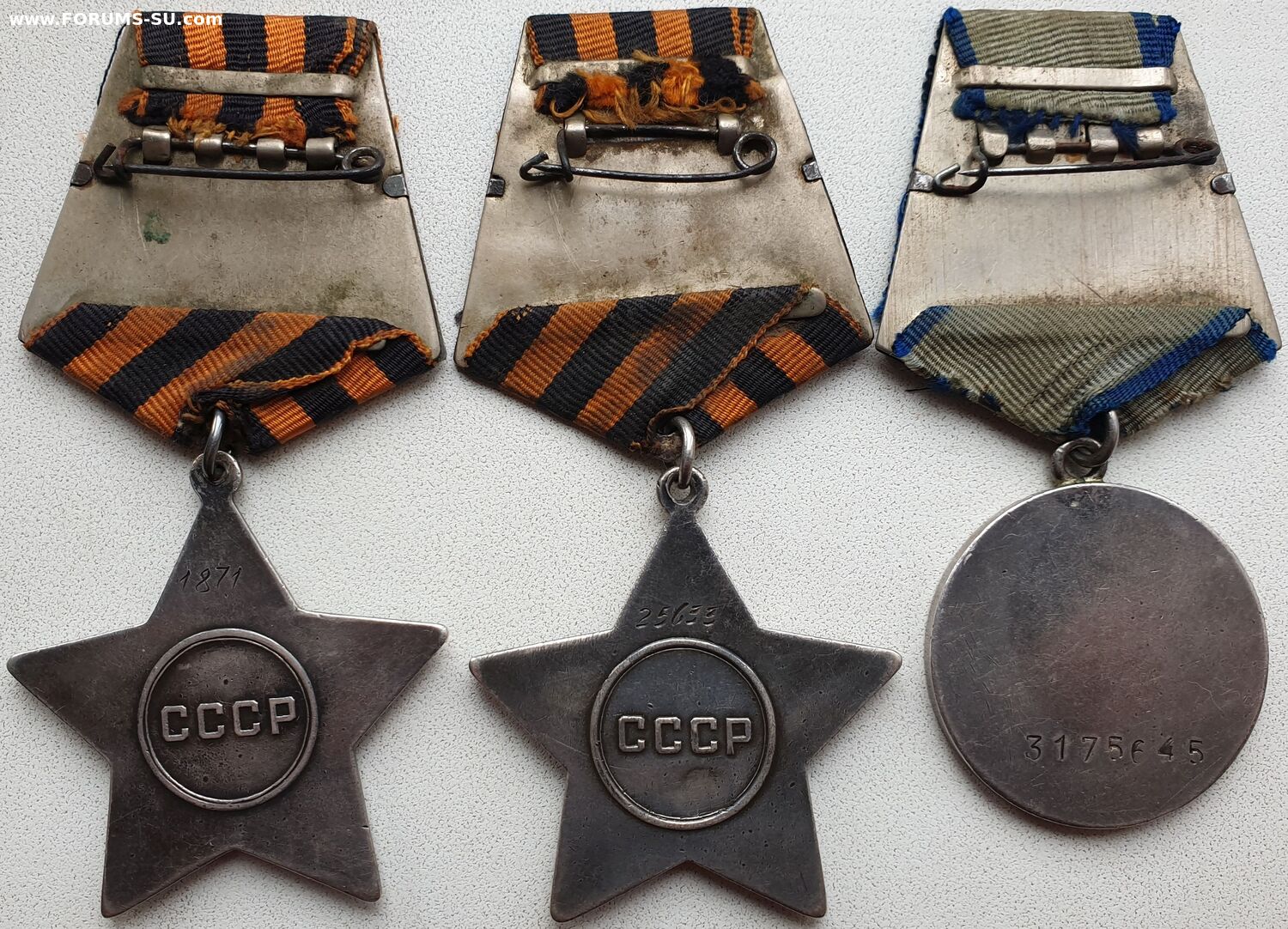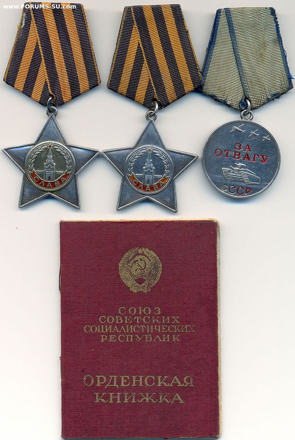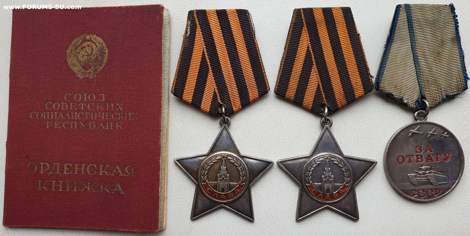 Отличная полная группа в сохране. Всю войну прошёл. Фото кавалера из сети. Орденская немного подклеена. Звено на второй степени не целое, маленький номер. На отваге лак в буквах родной.