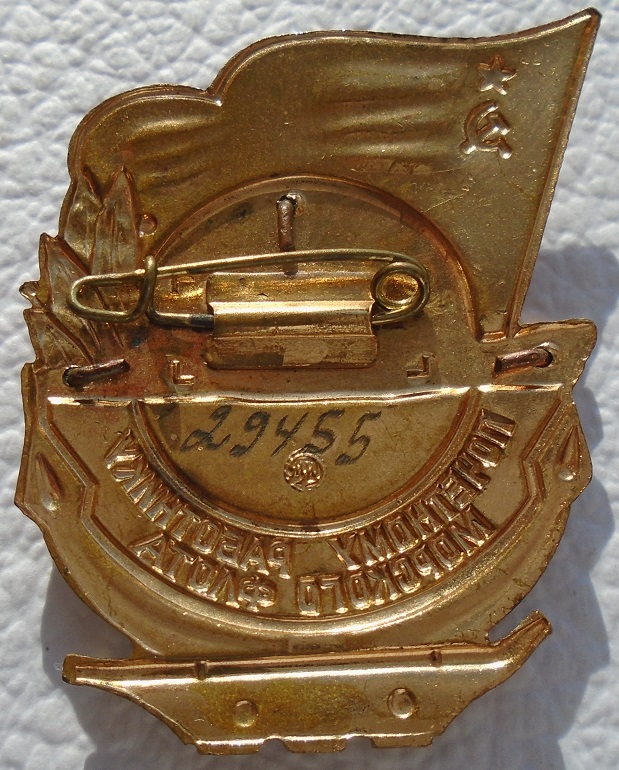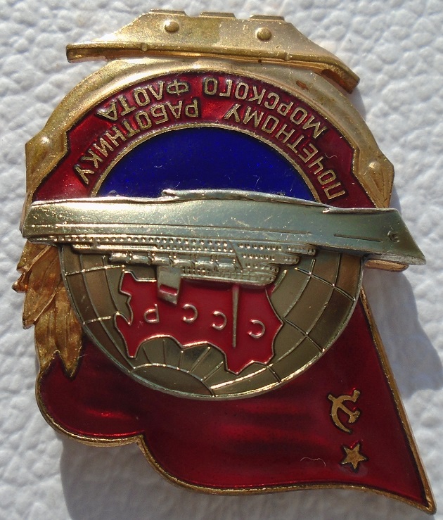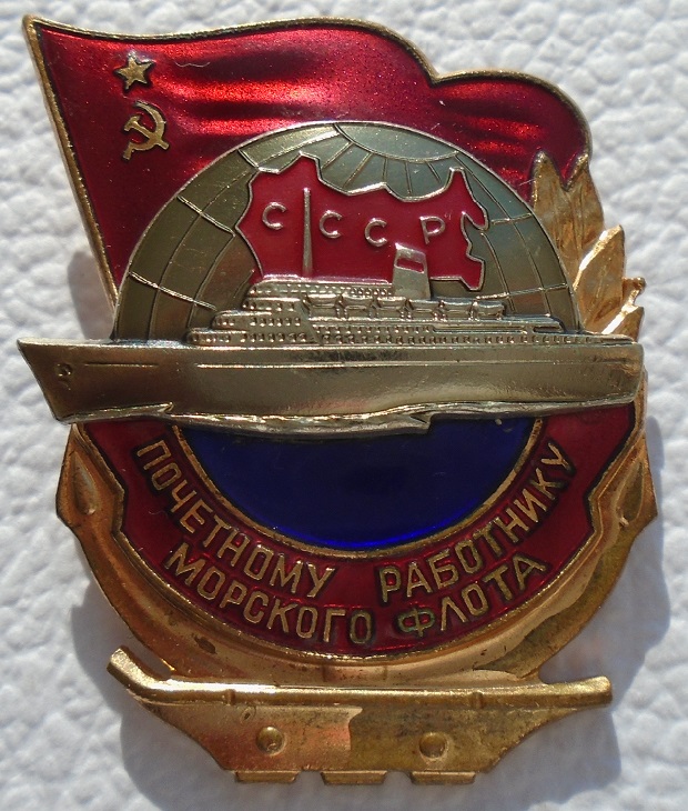 Знак "Почетному работнику морского флота", тип 3 с 1965 г; на заколке; эмали в норме; мпц 3500 р, пересыл 250 р 1 класс.