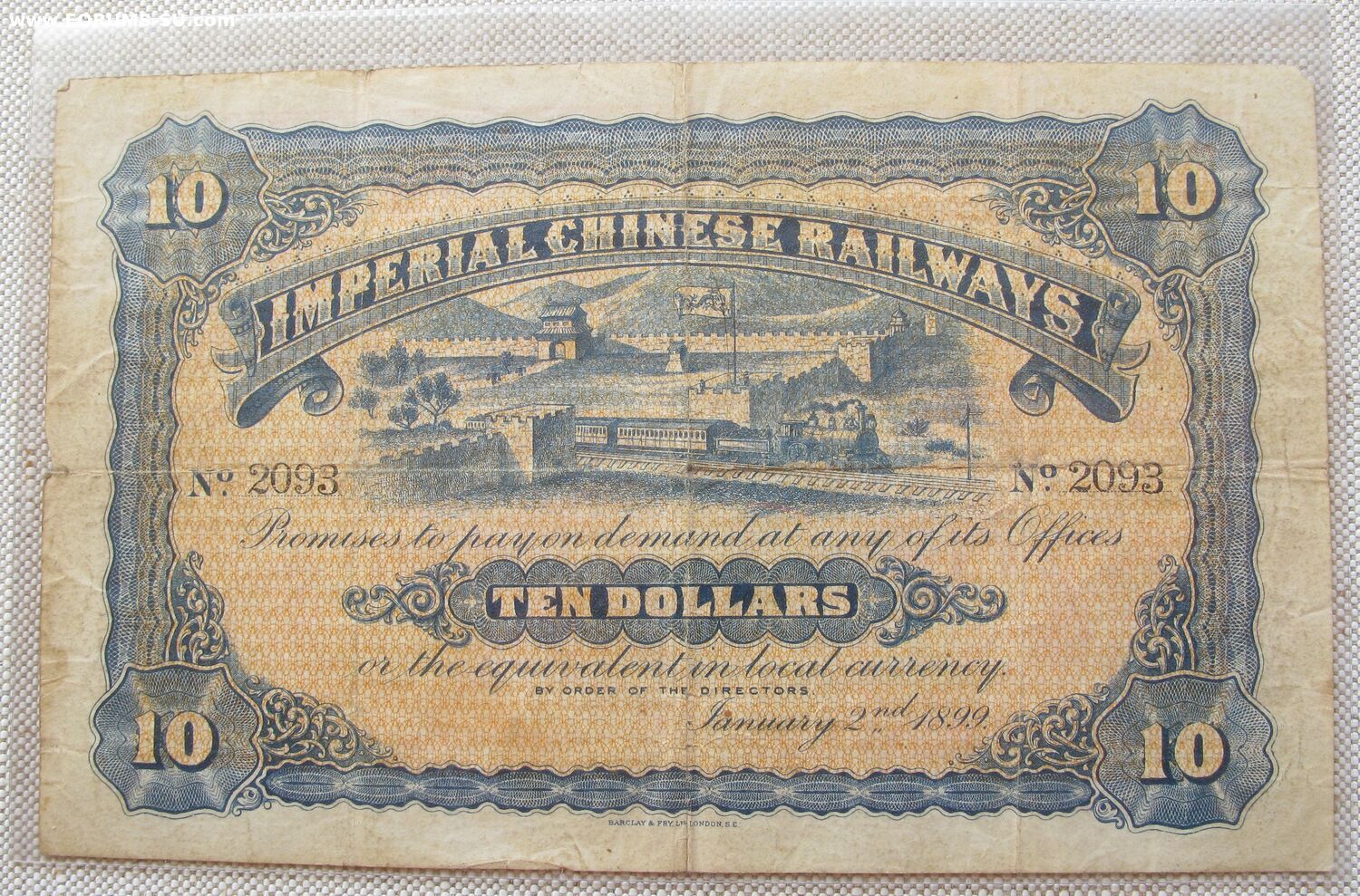 China Empire Imperial Chinese Railways 10 Dollars 1899 Pick antikvariat74 - 27 дек 2023 16:14.12 × Мини профиль пользователя antikvariat74 Сообщения: 286 Зарегистрирован: 12 окт 2012 17:33.31 Откуда: Москва Статус: Не в сети - 27 дек 2023 16:14.12 #6746860 China Empire Imperial Chinese Railways 10 Dollars 1899 Pick A61a300.000руб Фото