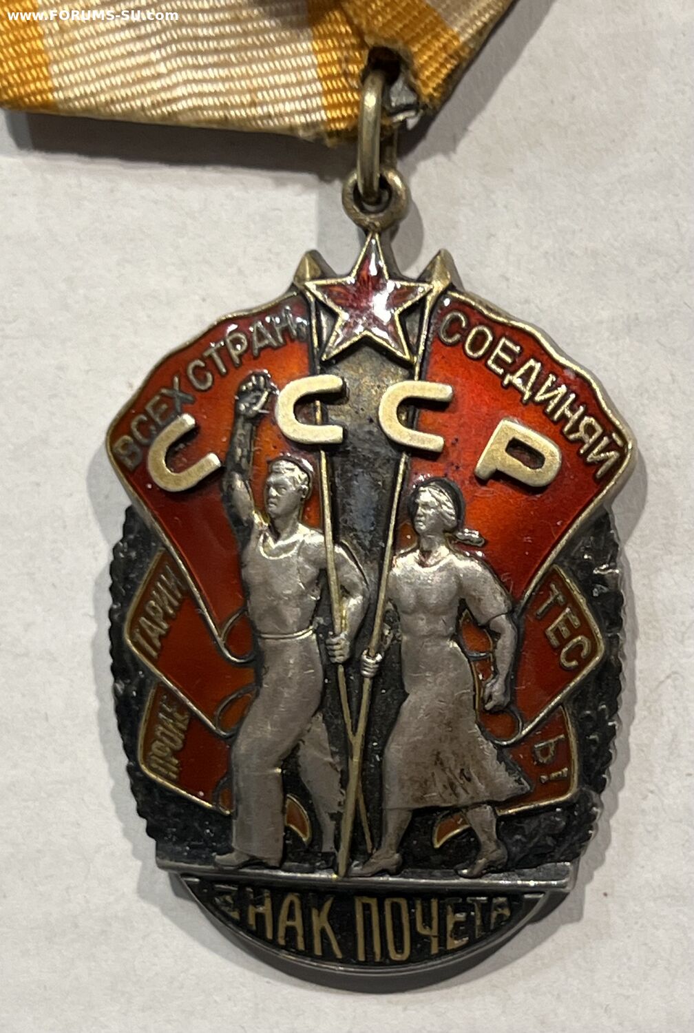 Полностью родной сбор, номер штихелем без черты под номером, звено целое, двухслойная стальная колодка, эмали без дефектов, густая патина, яркая позолота, знак практически не ношен! Доп. фото по запросу.