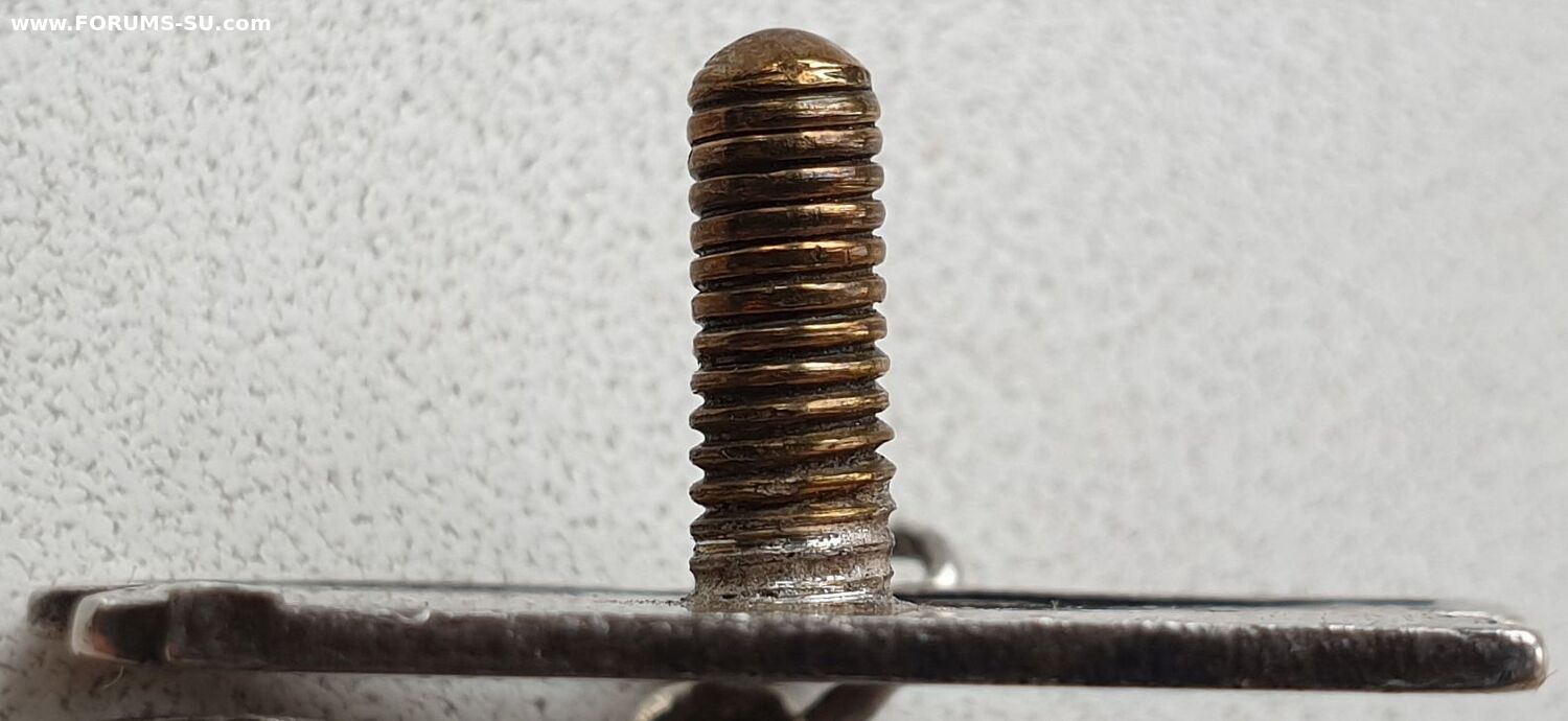 Не пробивал. Гаек и прижимной нет. Колодка подлинная. Лак в буквах родной.