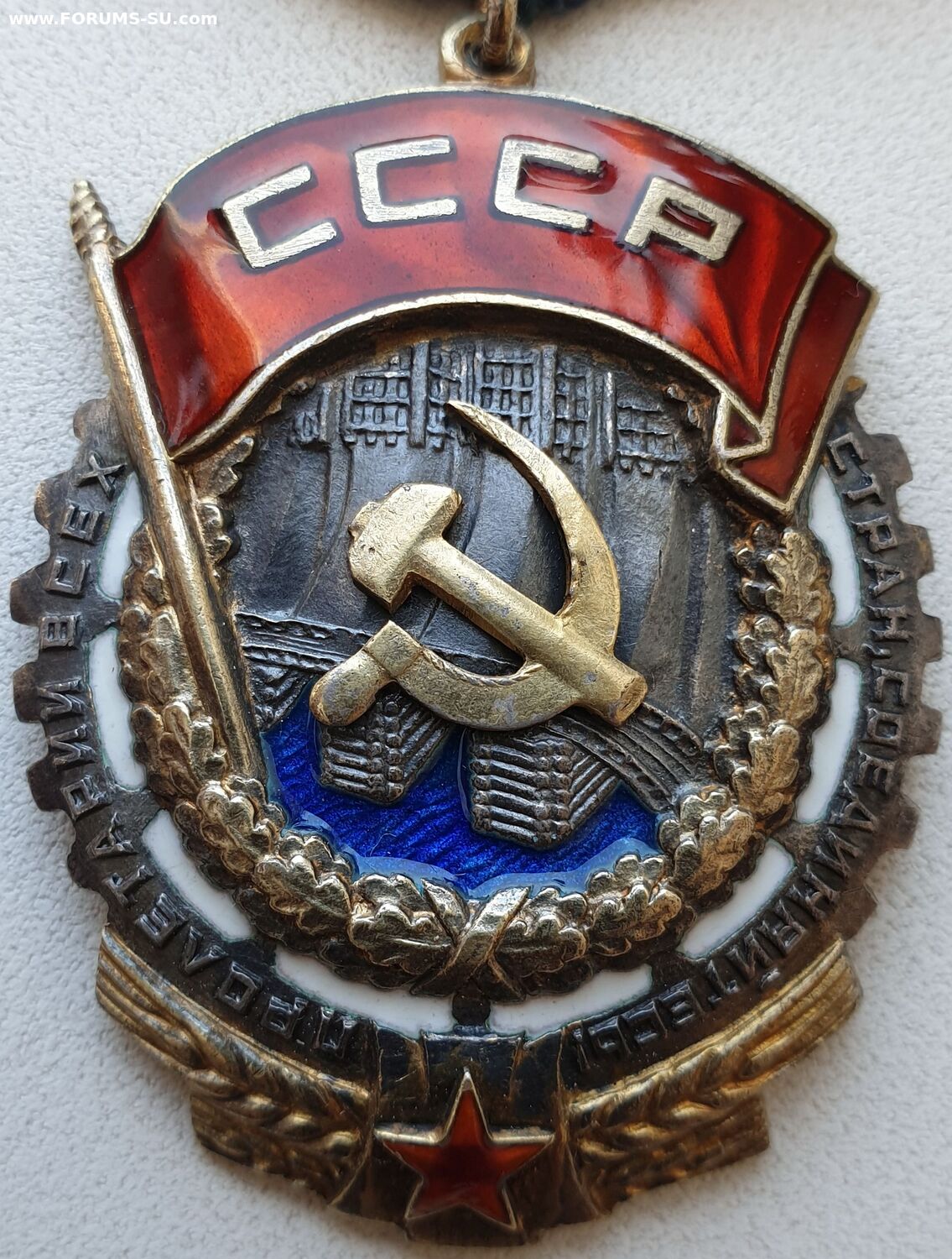 Тип 3, Вариант 2. Клеймо Монетного Двора расположено в верхней части ордена. Слово "МОНЕТНЫЙ" закруглено вверх (впадиной). Аналогичный тип клейма использовался на последних штифтовых знаках второго типа. Минимальный известный номер 21016, максимальный - 26568. http://mondvor.narod.ru/ORbnLab2.htm