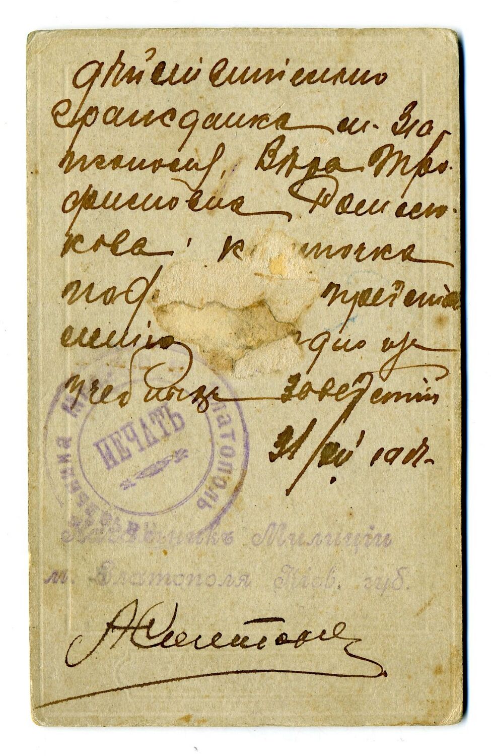 Подпись начальника Златополя Киев. губ.
