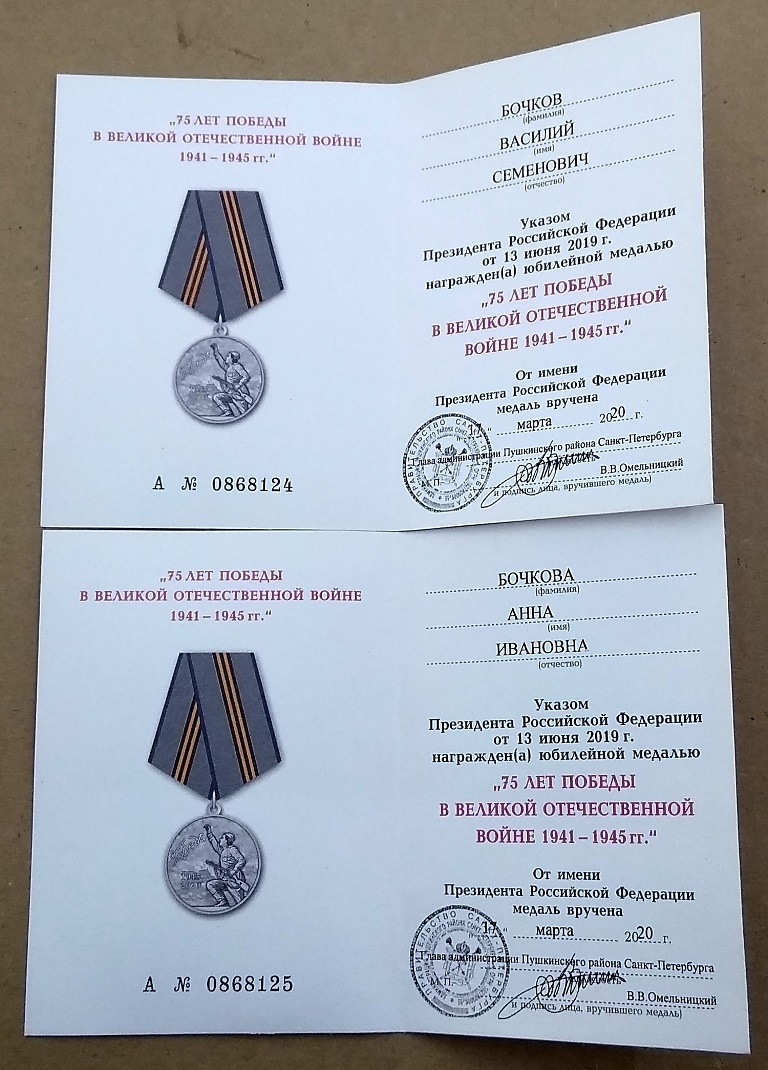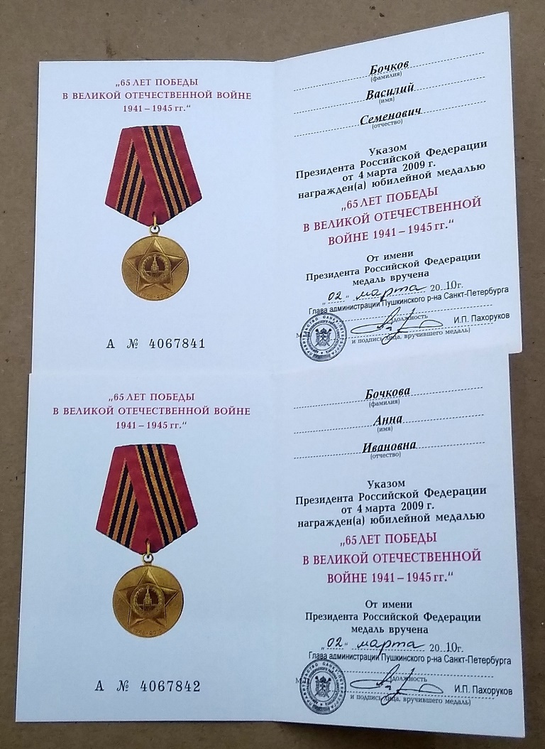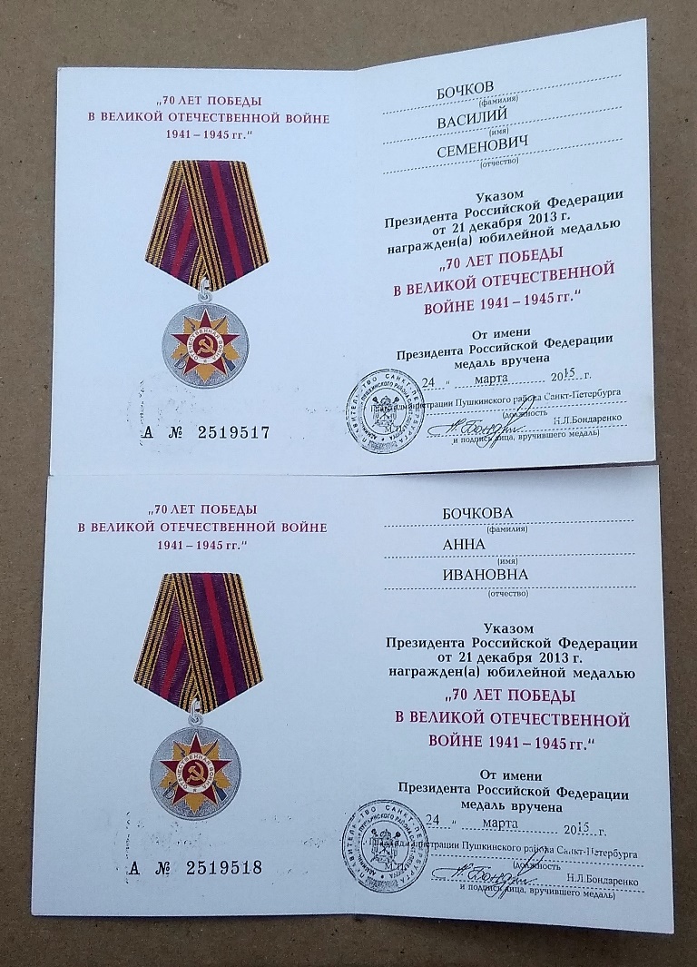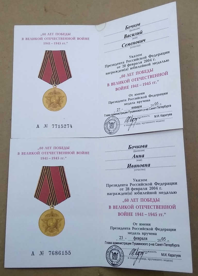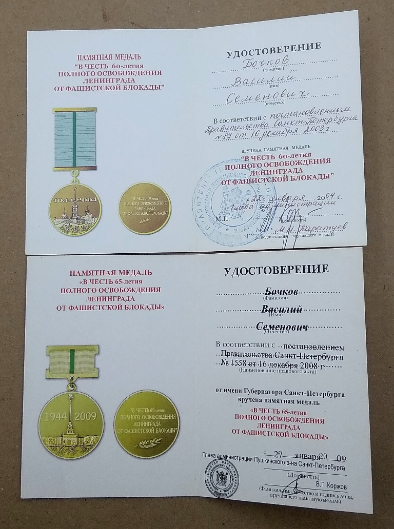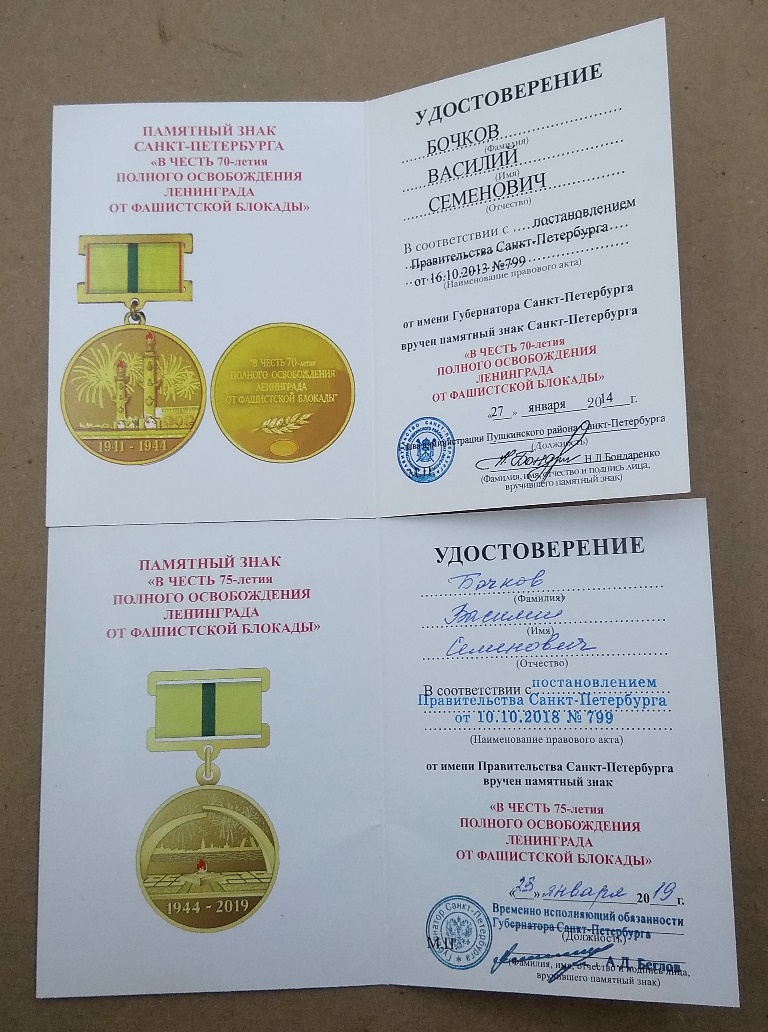 Комплекты 50,60,65,70,75 лет Освобождения Ленинграда и Победы ВОВ и др на Мужа и Жену