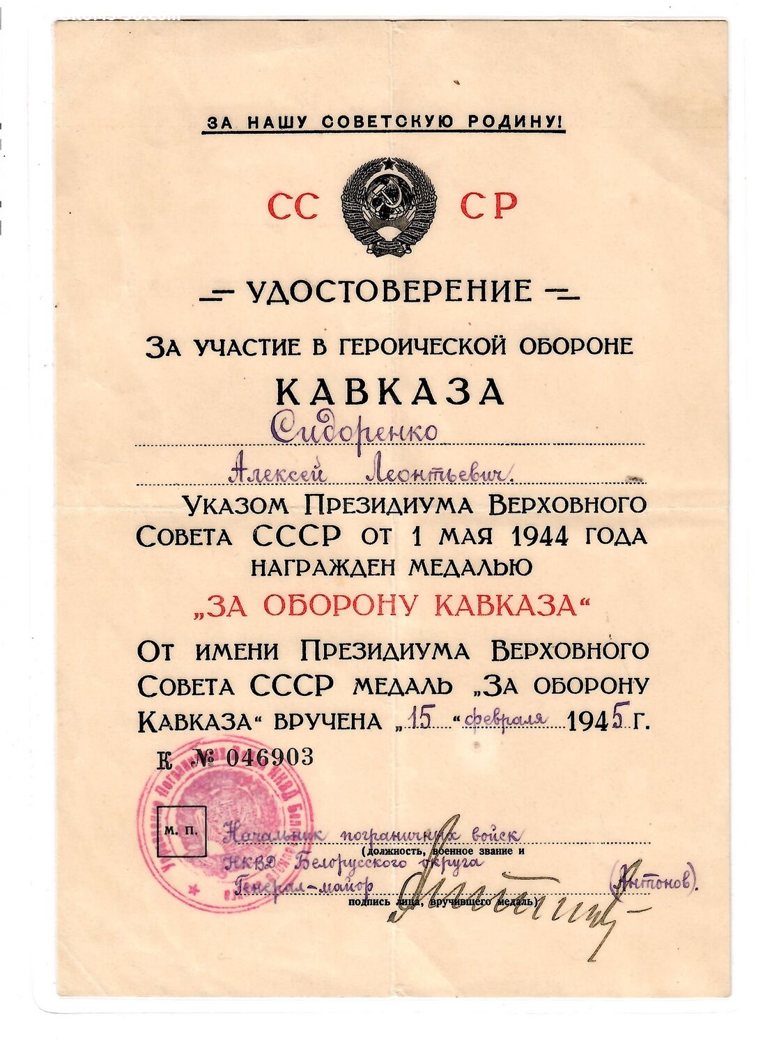 Кавказ заламинирован. МПЦ 10 т.р. На кавалера 3х БКЗ и 3х ОВ 1 ст. покупателю УК, УПК и фото кавалера.