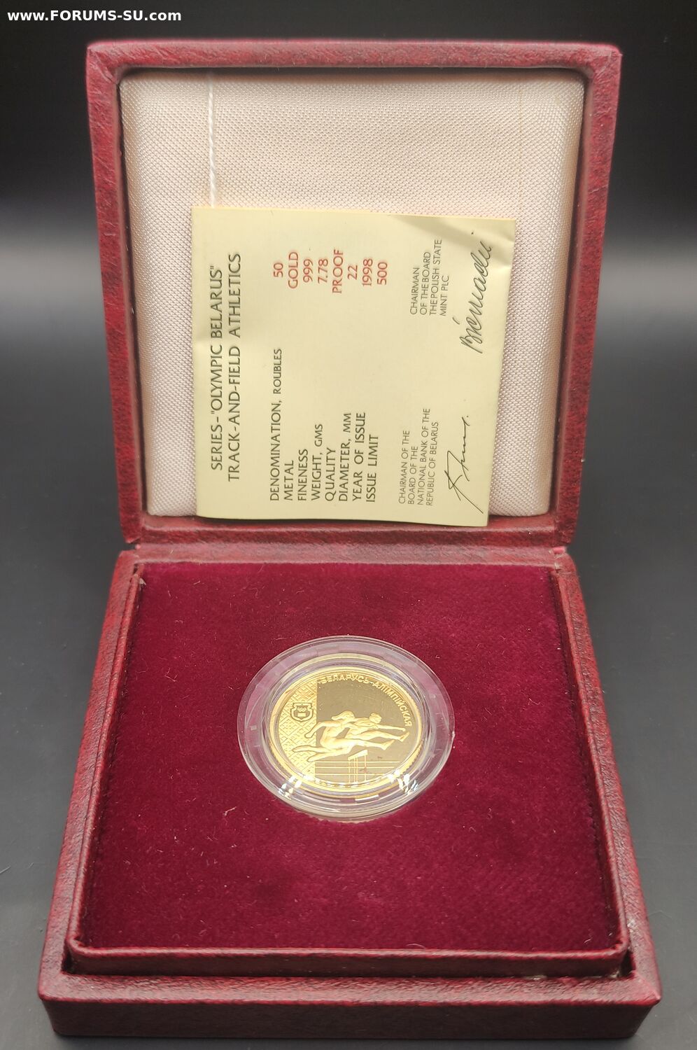 Беларусь 50 рублей 1998, Au999, легкая атлетика, из серии "Беларусь олимпийская".