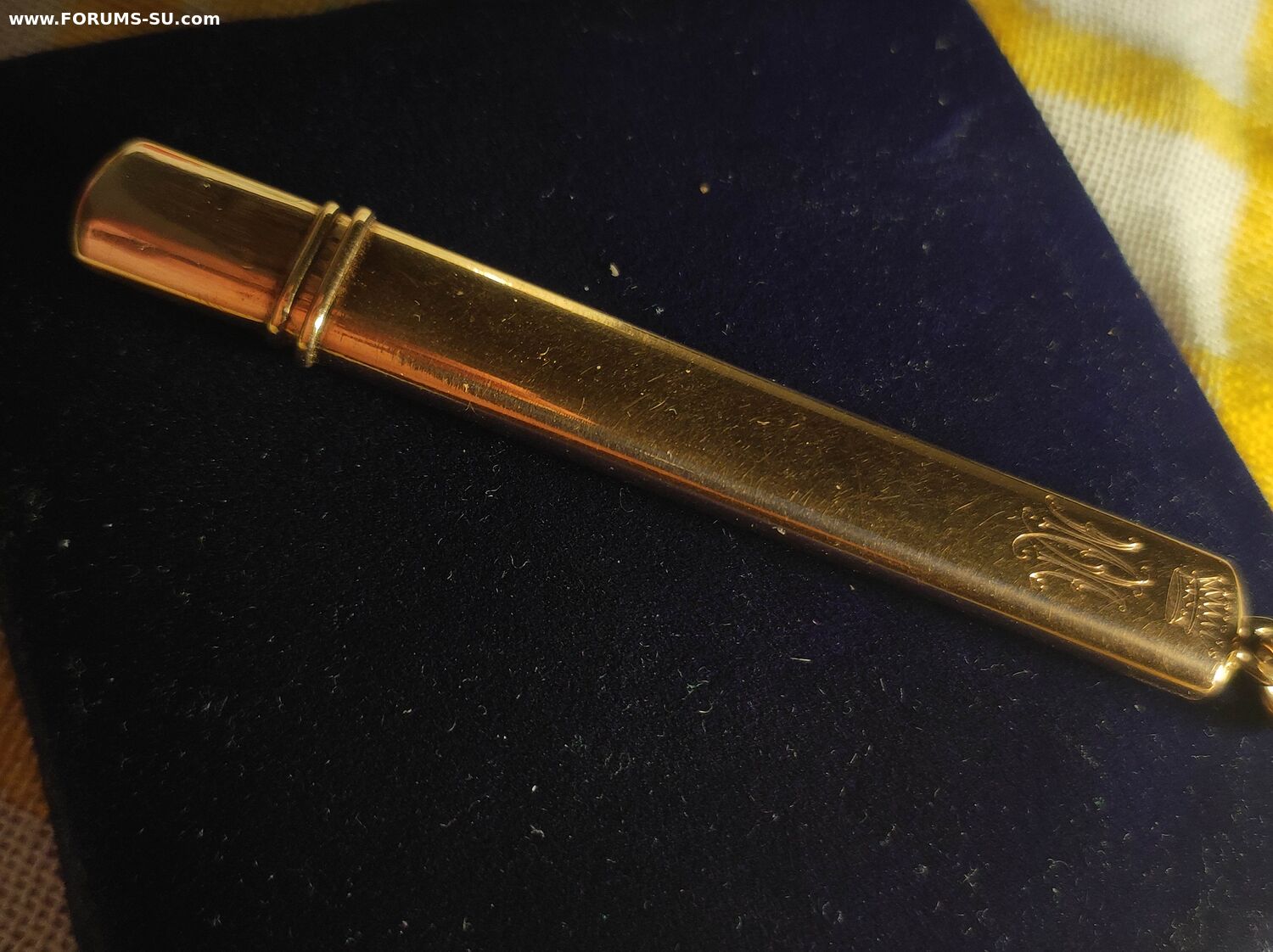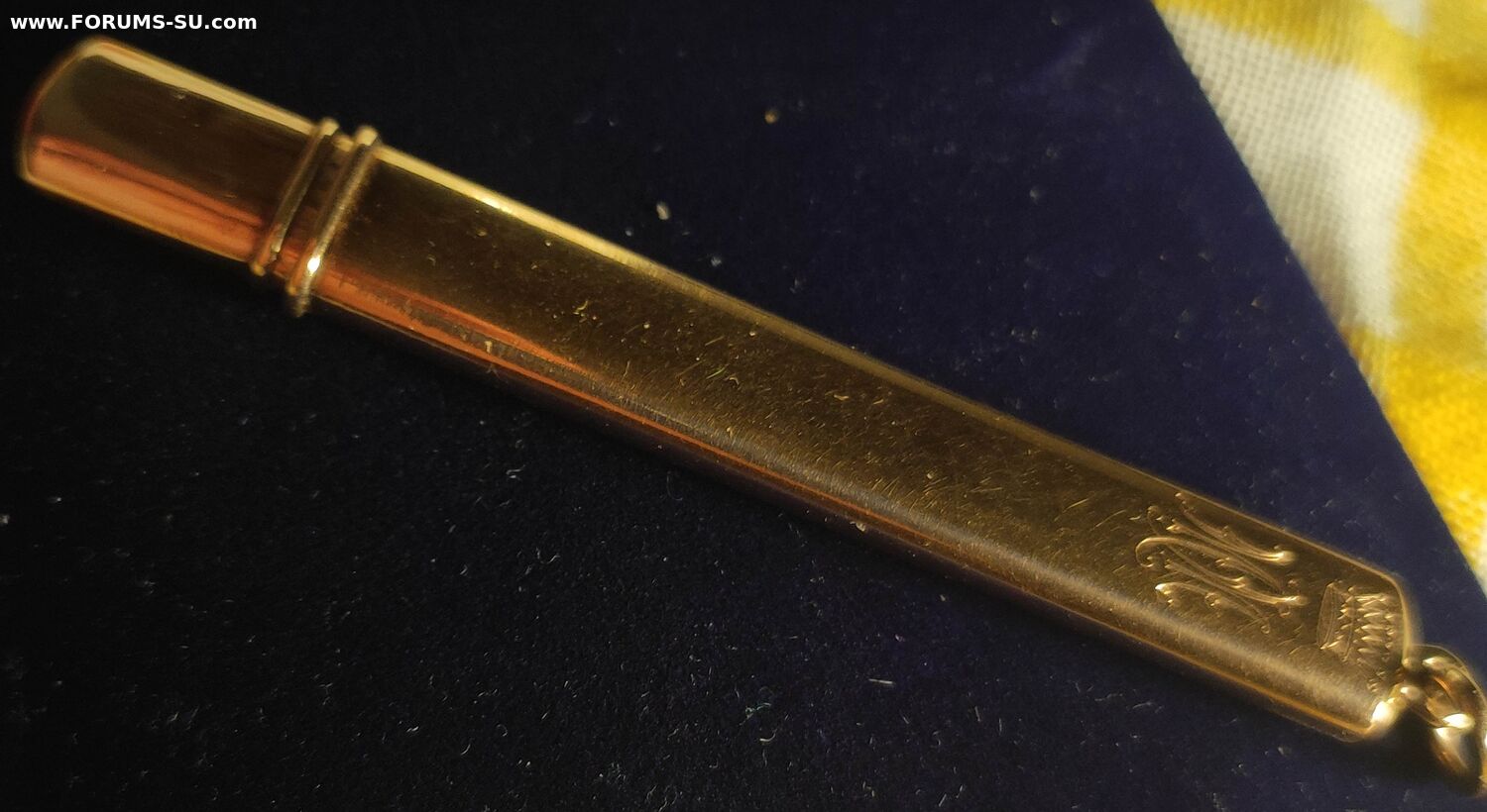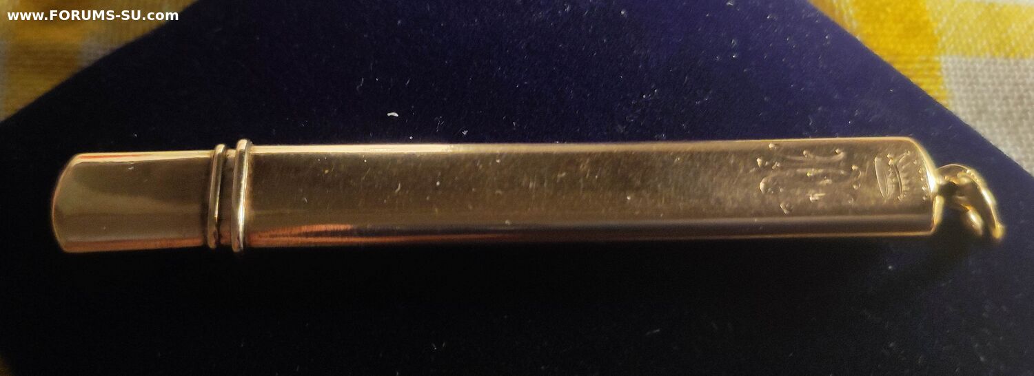 Подвес карандаш с баронской короной и владельческой монограммой золото 56 ,мастер Александр Вякева(сын Стефана .Вякевы) оба работали на фирму Фаберже. Вес 7.05 грамма. Длина 8 см.