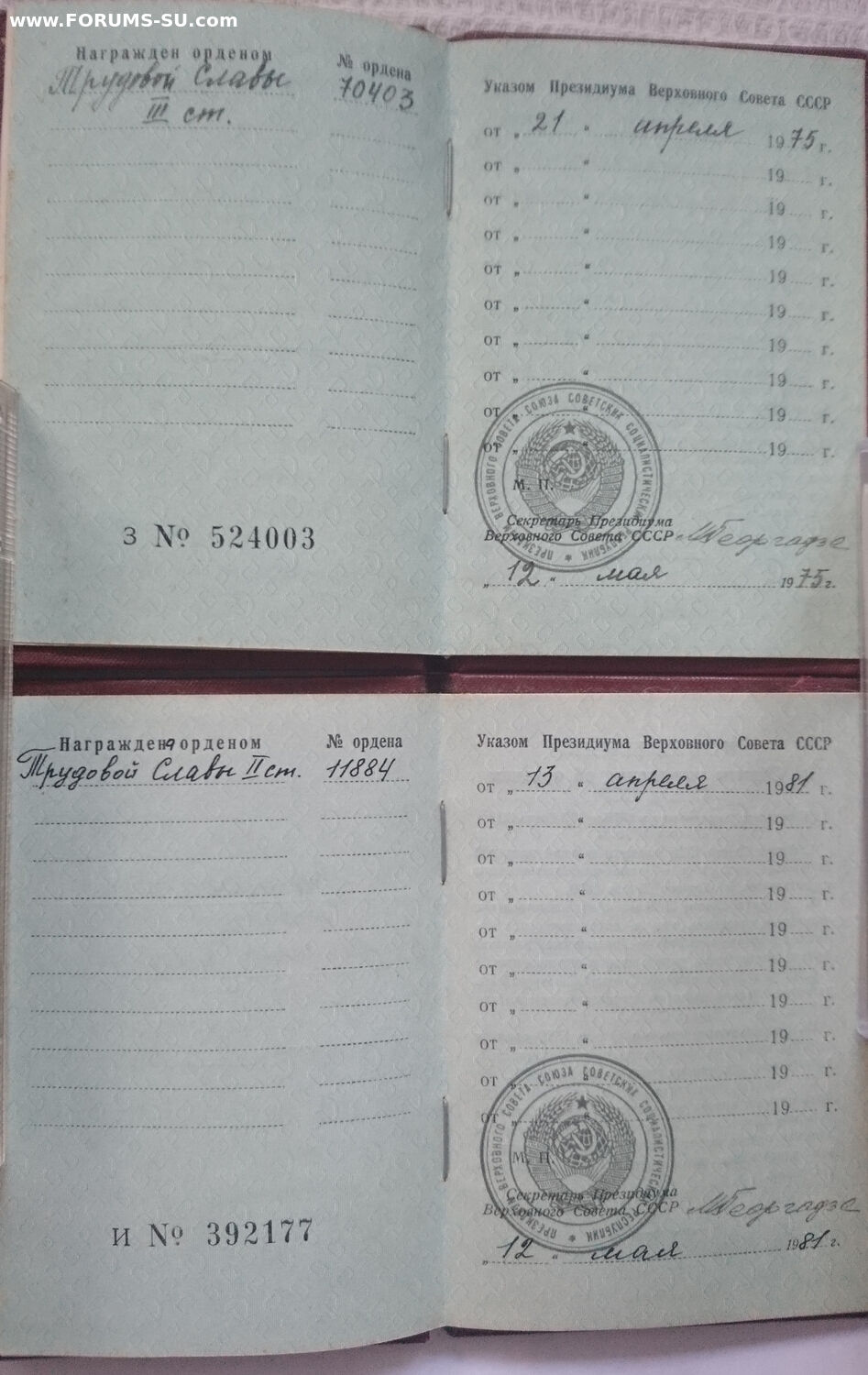 Предлагаю комплект Трудовая слава-3 70403 и Трудовая слава-2 11884 на одного кавалера на доках.