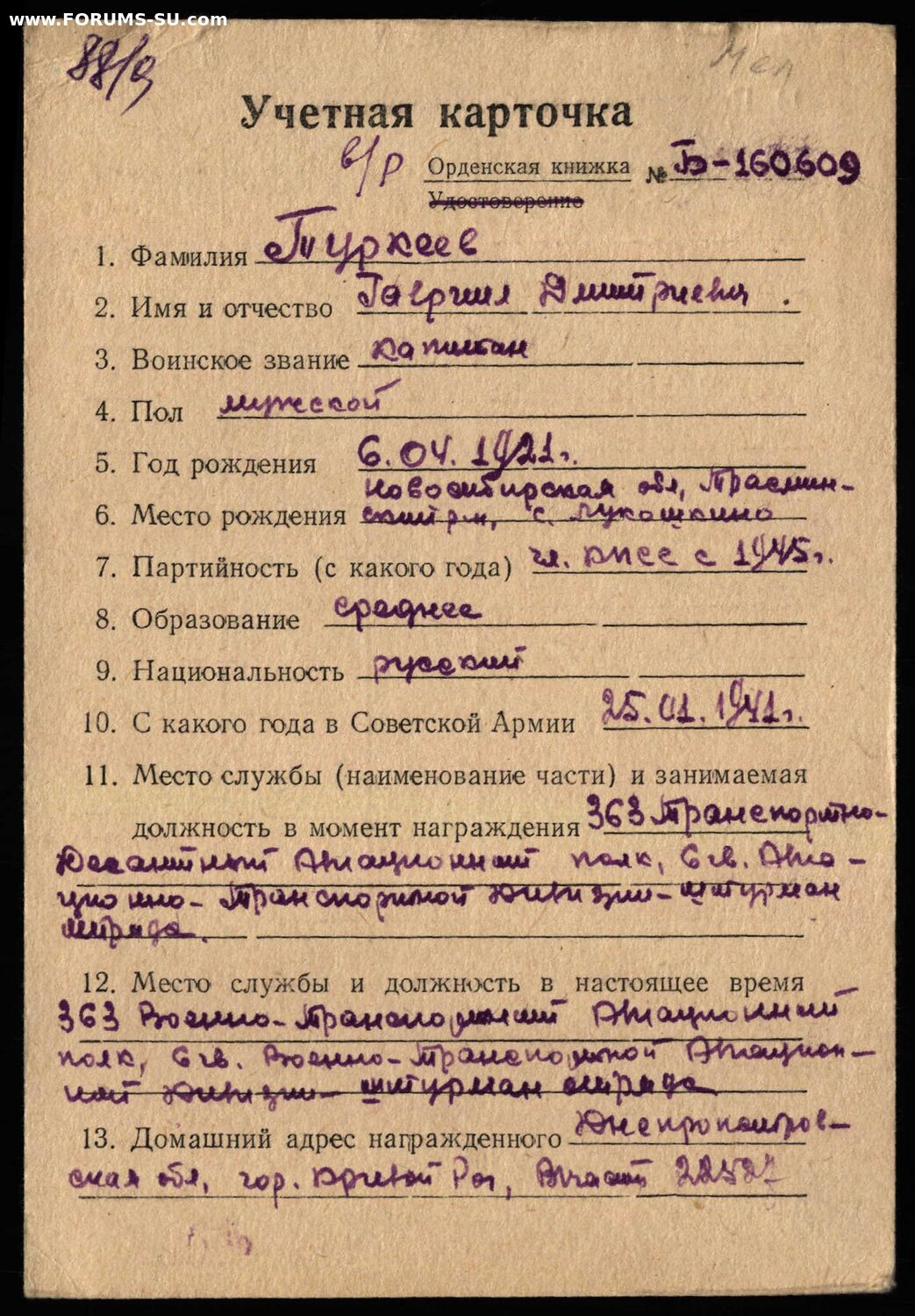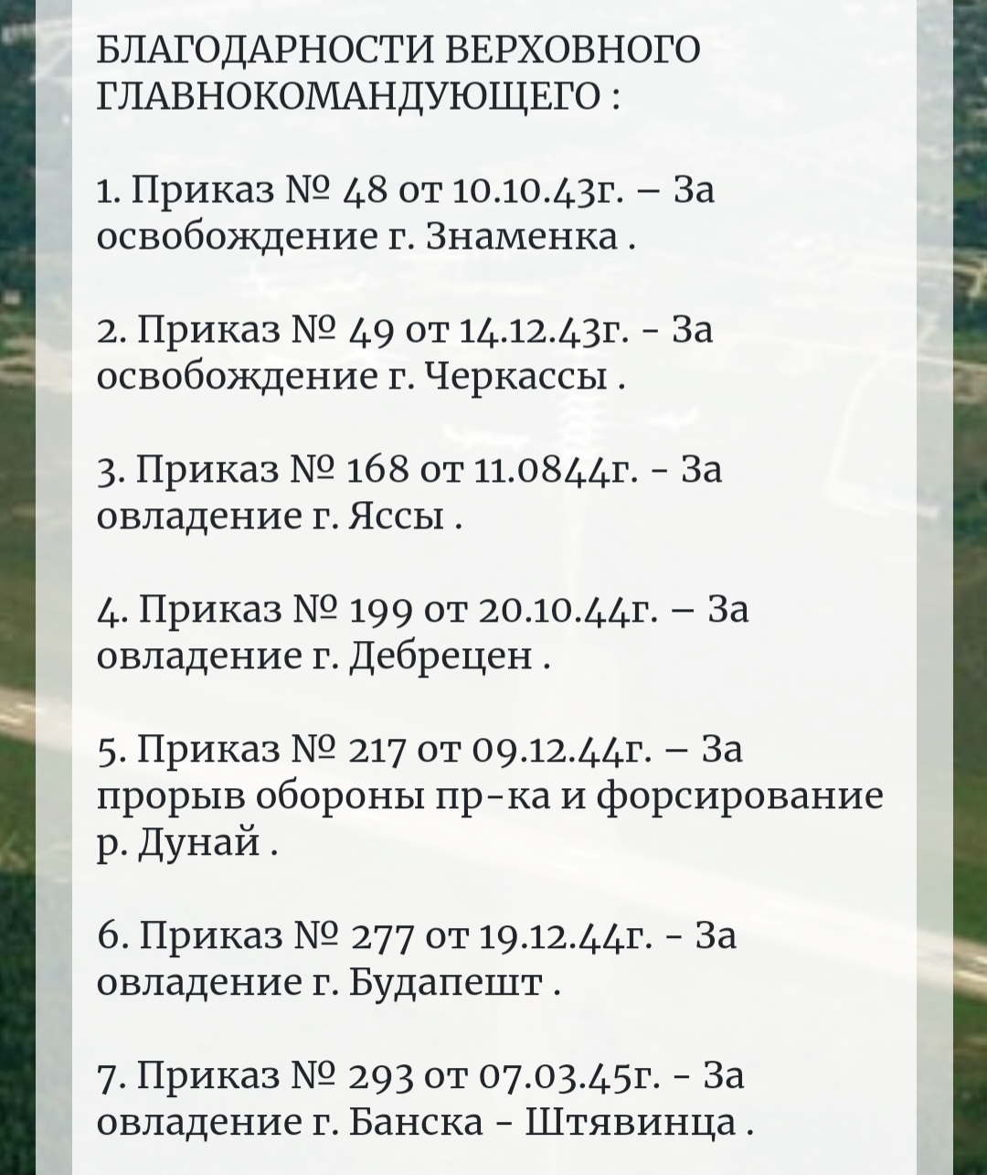 Красного Знамени, Суворова, Кутузова, Богдана Хмельницкого, Александра Невского, Ушакова, Нахимова, Отечественной Войны, Красной Звезды, Славы, За Службу Родине в ВС СССР