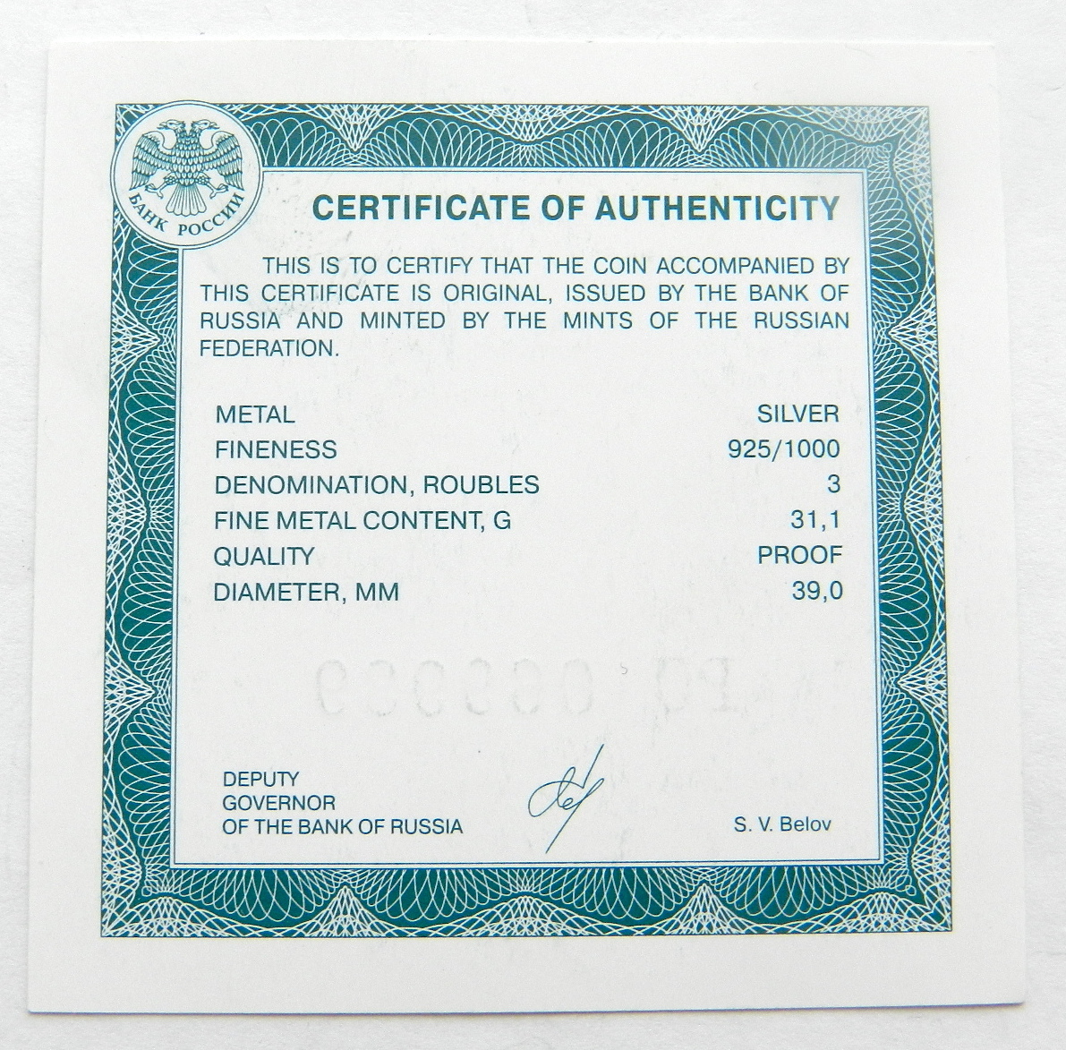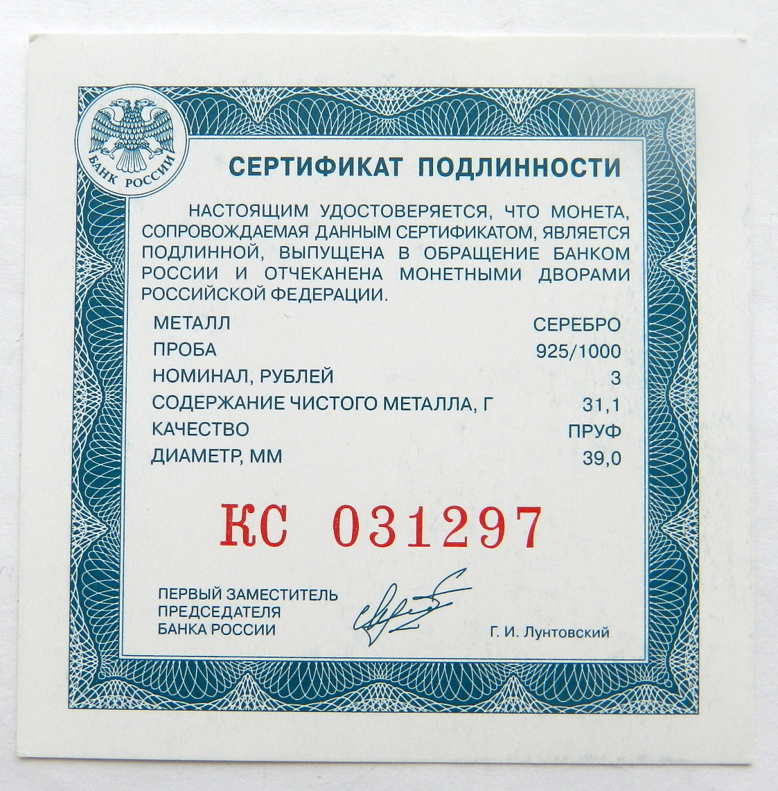 Gatherer - 15 янв 2025 13:51.13 × Мини профиль пользователя Gatherer Сообщения: 3073 Зарегистрирован: 21 фев 2013 13:23.38 Статус: Не в сети - 15 янв 2025 13:51.13 #6828453 Cертификат на серебрянные 3 рубля 31,1 гр (Лунтовский) Фото