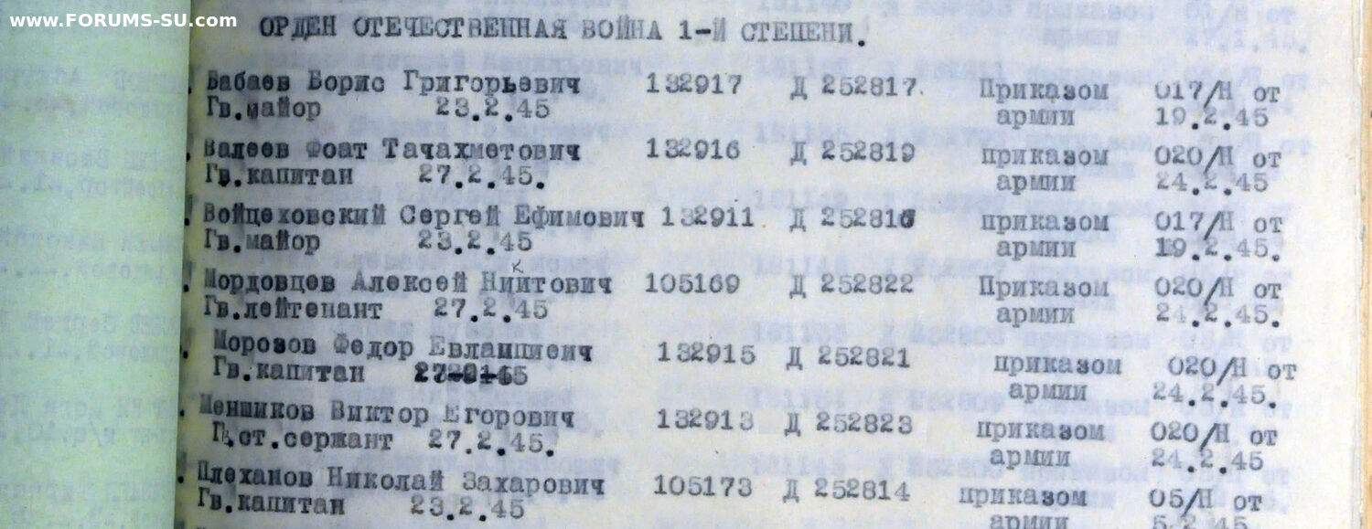 Красного Знамени, Суворова, Кутузова, Богдана Хмельницкого, Александра Невского, Ушакова, Нахимова, Отечественной Войны, Красной Звезды, Славы, За Службу Родине в ВС СССР
