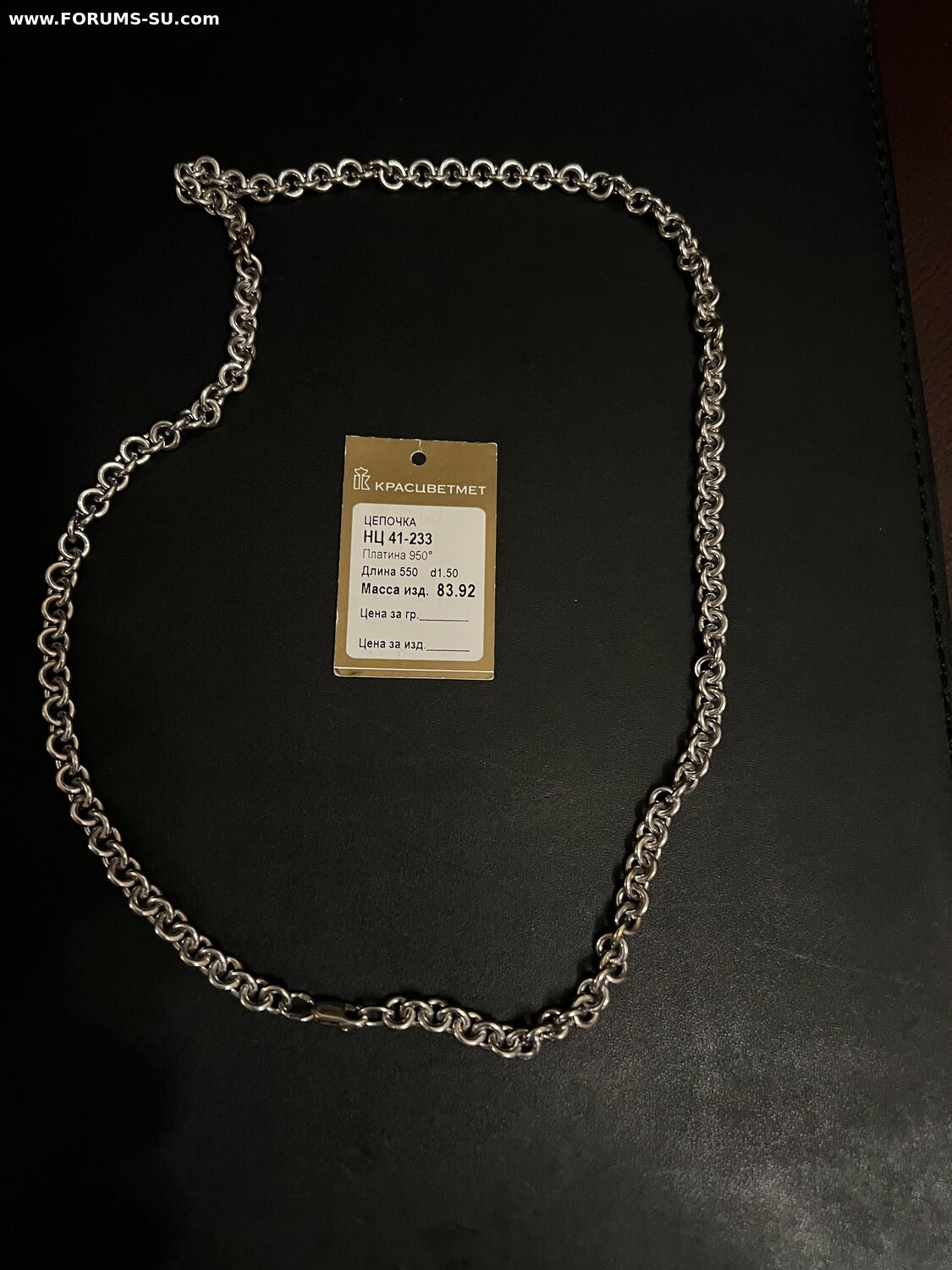 Продам цепь из платины 950 пробы, вес 84 гр, длина 55 см Красцветмет. Вся инфа на заводской бирке. Предмет делали на заказ, условное бу . Уровень цен на платину www.platina24.ru и www.platinumlab.ru Так вот от 10-15 тыр за грамм. Моя цена 3550 рэ за грамм. Цепь в мск, в регионы отправка курьерской доставкой Спецсвязь, с полной страховкой и описью, будет отправлена после полной предоплаты. Глупые вопросы, типа по цене лома не предлагать. У меня шикарное изделие!