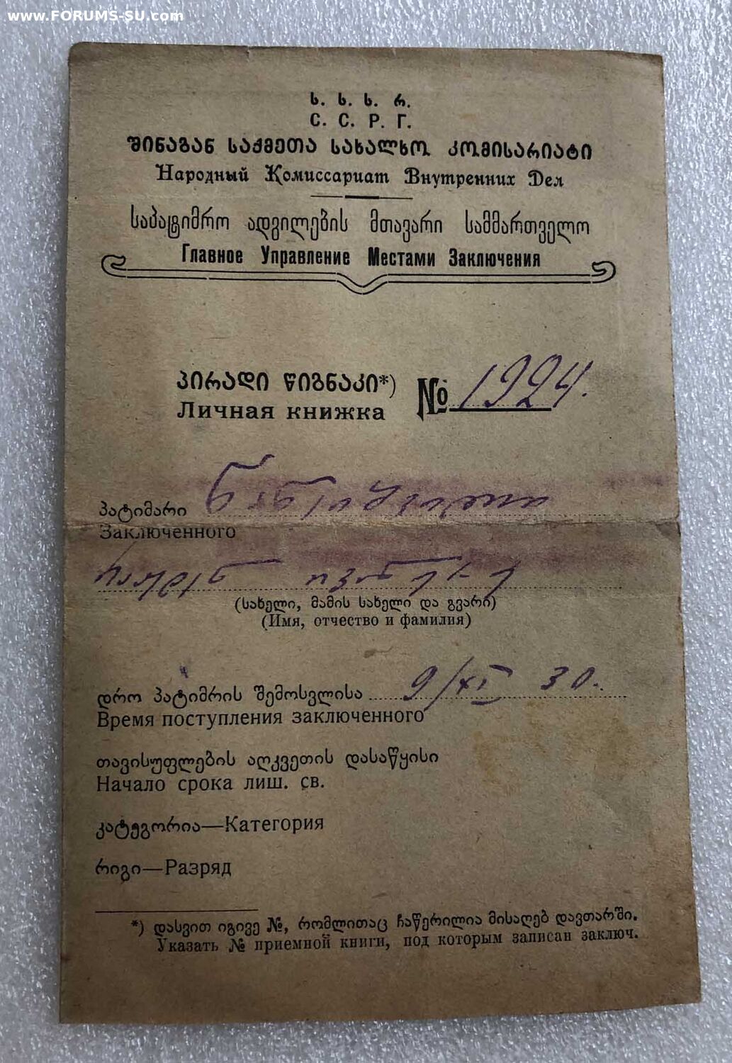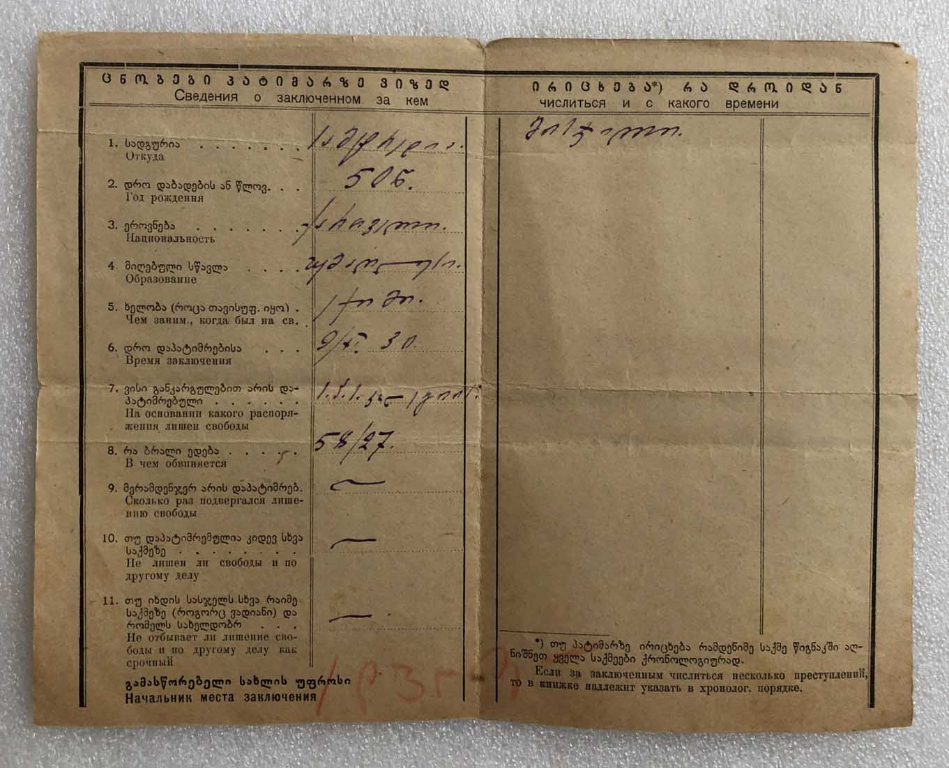 Нанеишвили Ражден Иванович, врач, статья 58/27, арестован коллегией ОГПУ.