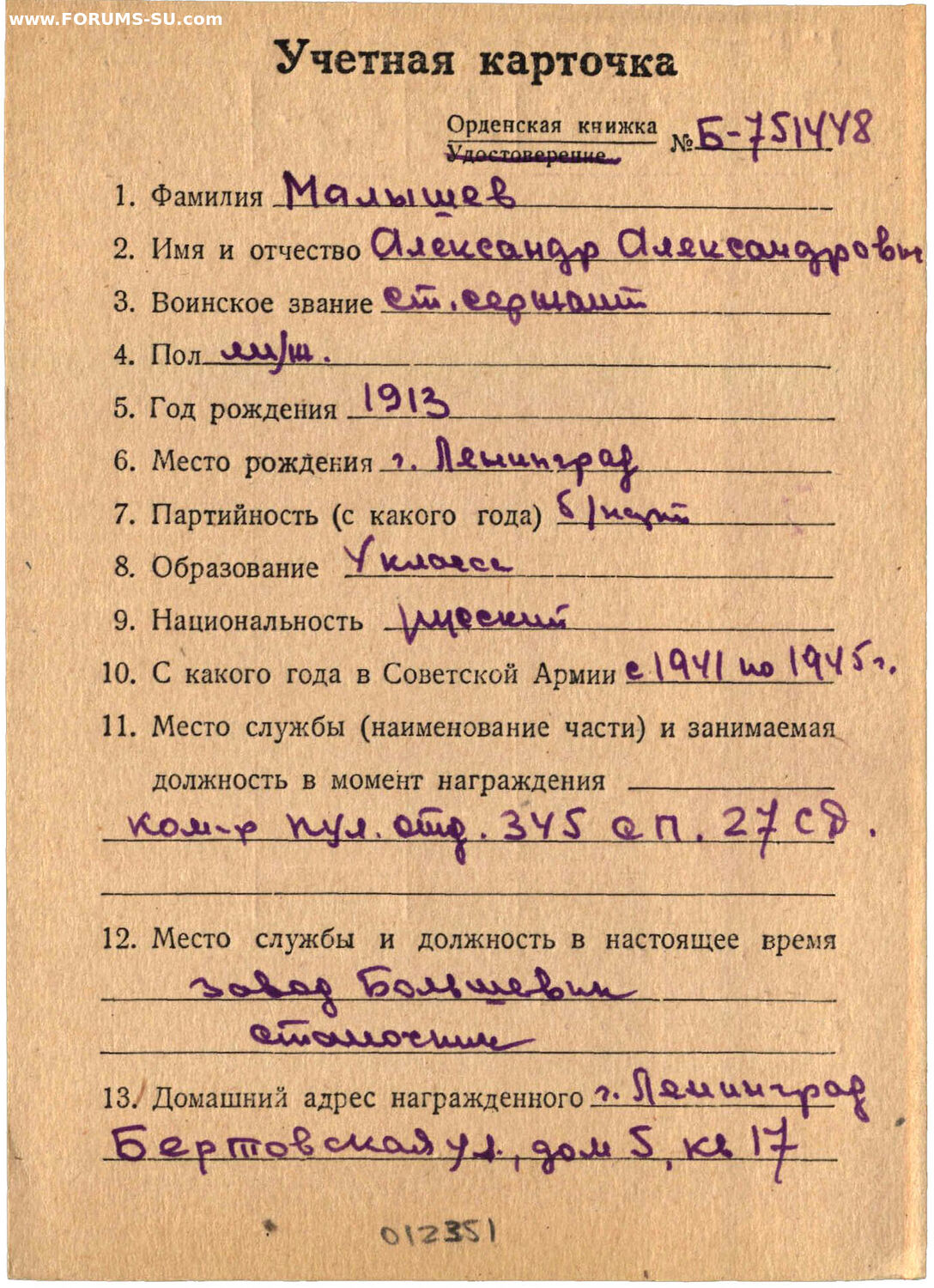 ОВ 2 ст. № 893080 На ПУЛЕМЕТЧИКА состояние отличное