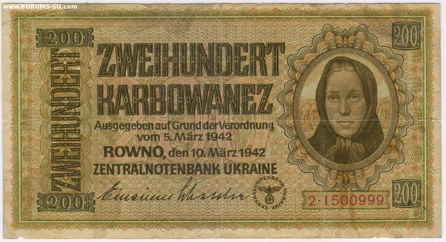 200 карбованцев 1942 .Оккупация. РОВНО.