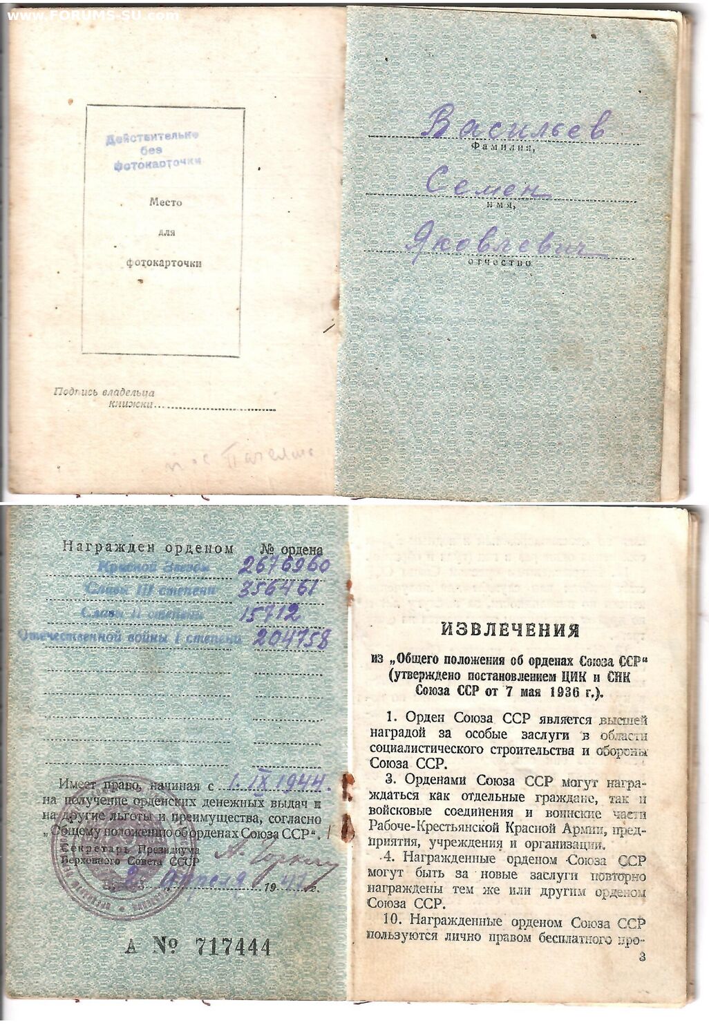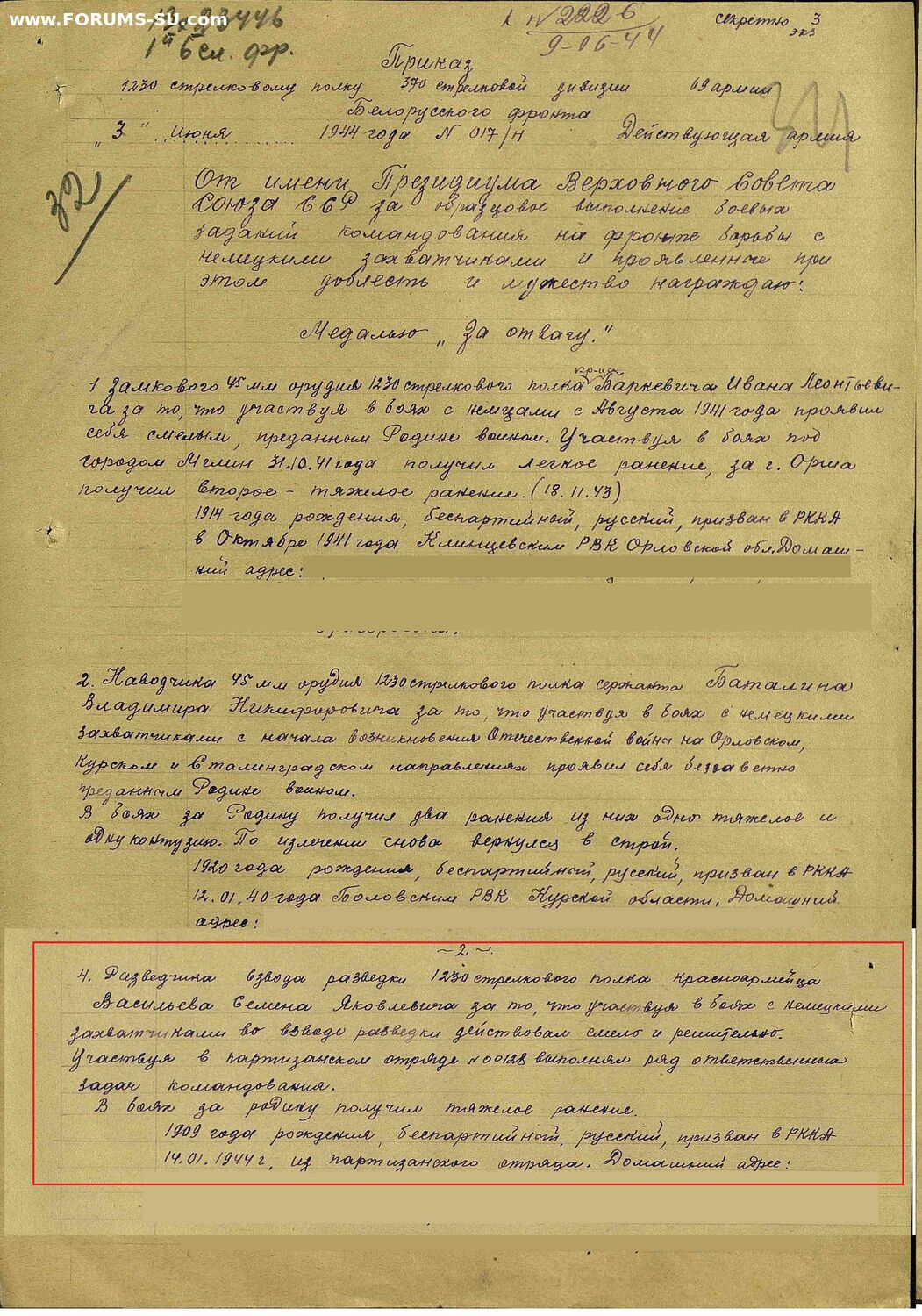 Неполный комплект наград на разведчика из партизан. Представлялся к Славе 1 ст.