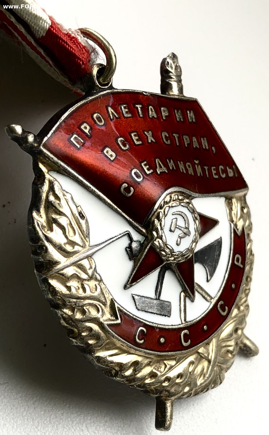 Из недостатков только слабозаметная микрочешуйка на верхней кромке знамени над буквой "А" (показано на фото)