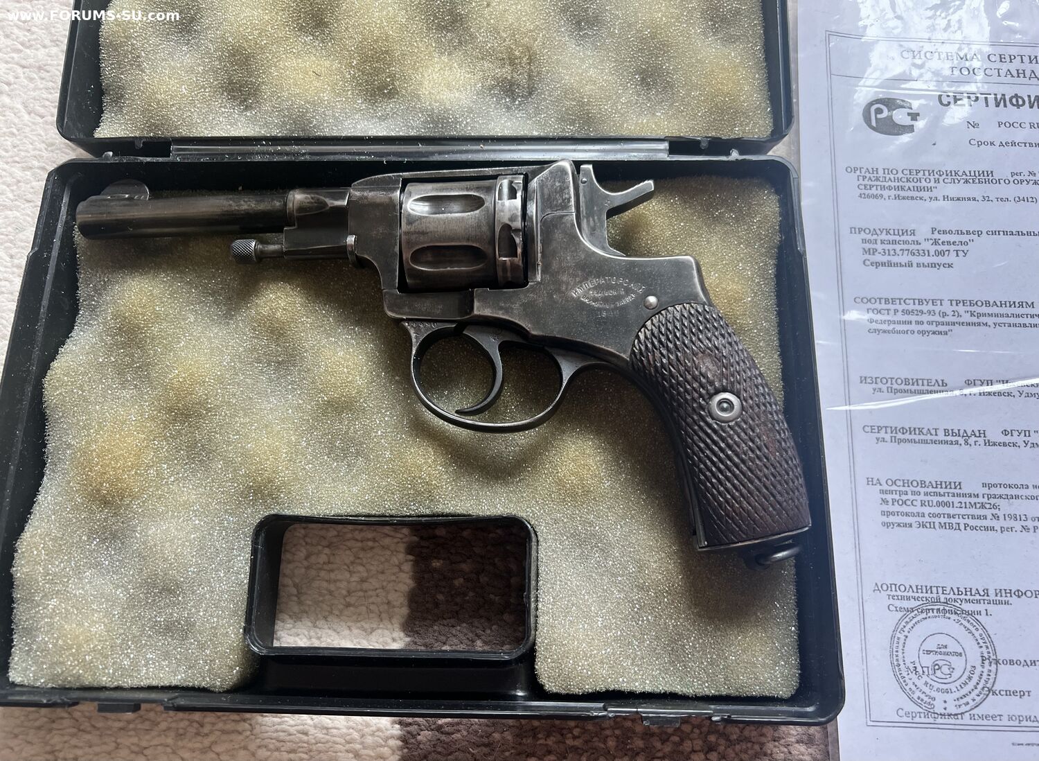 Шикарный Наган с полукруглой мушью родным деревом, орликом и приемками, толстый стволик. Родной дипломат, такие выпускались последнии раз 15 лет назад.