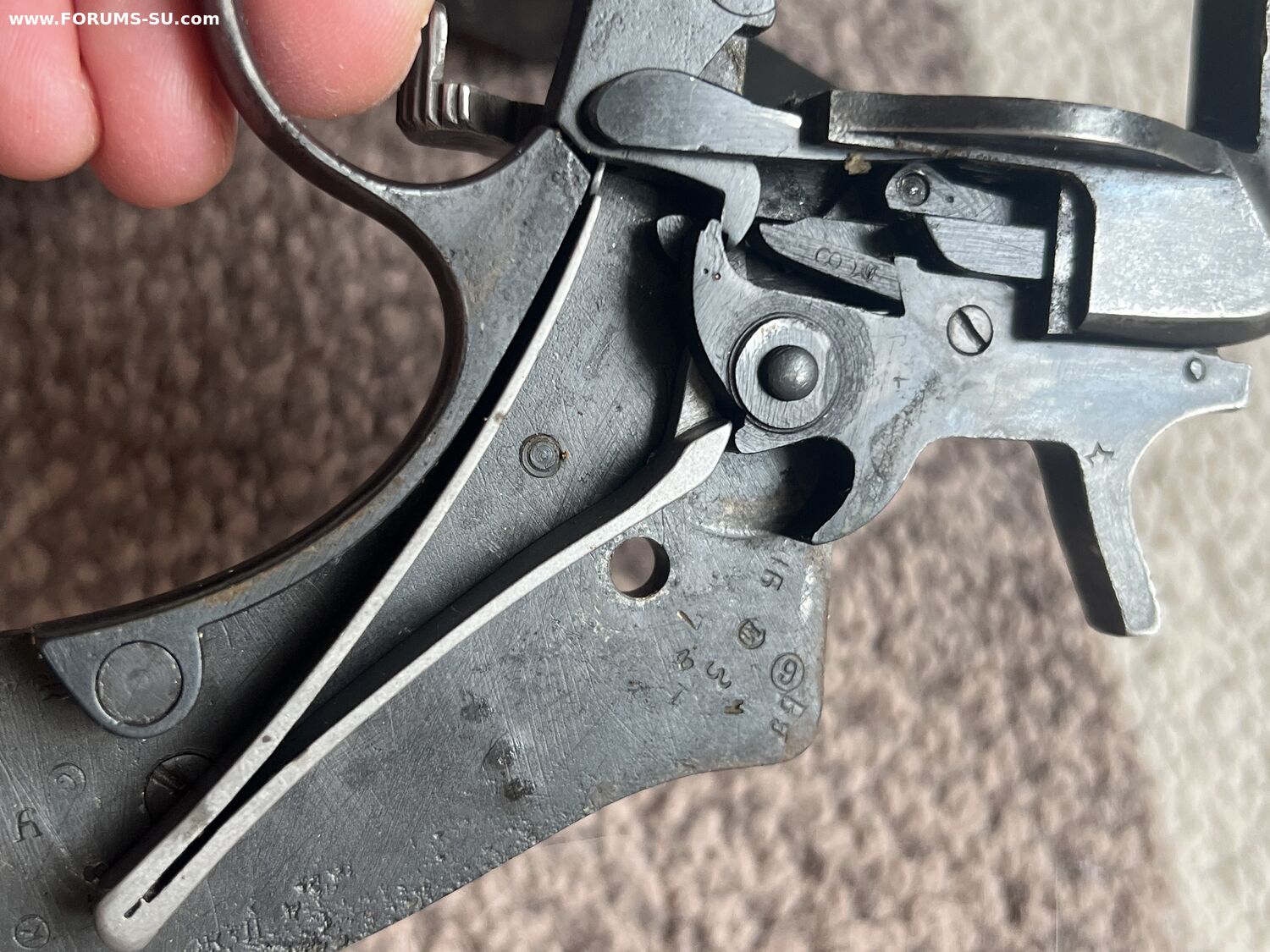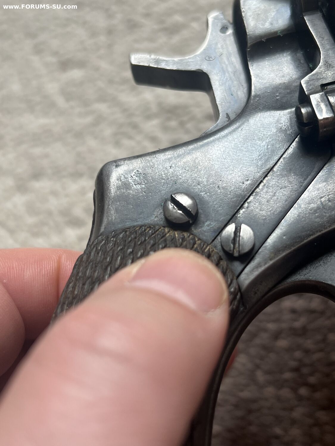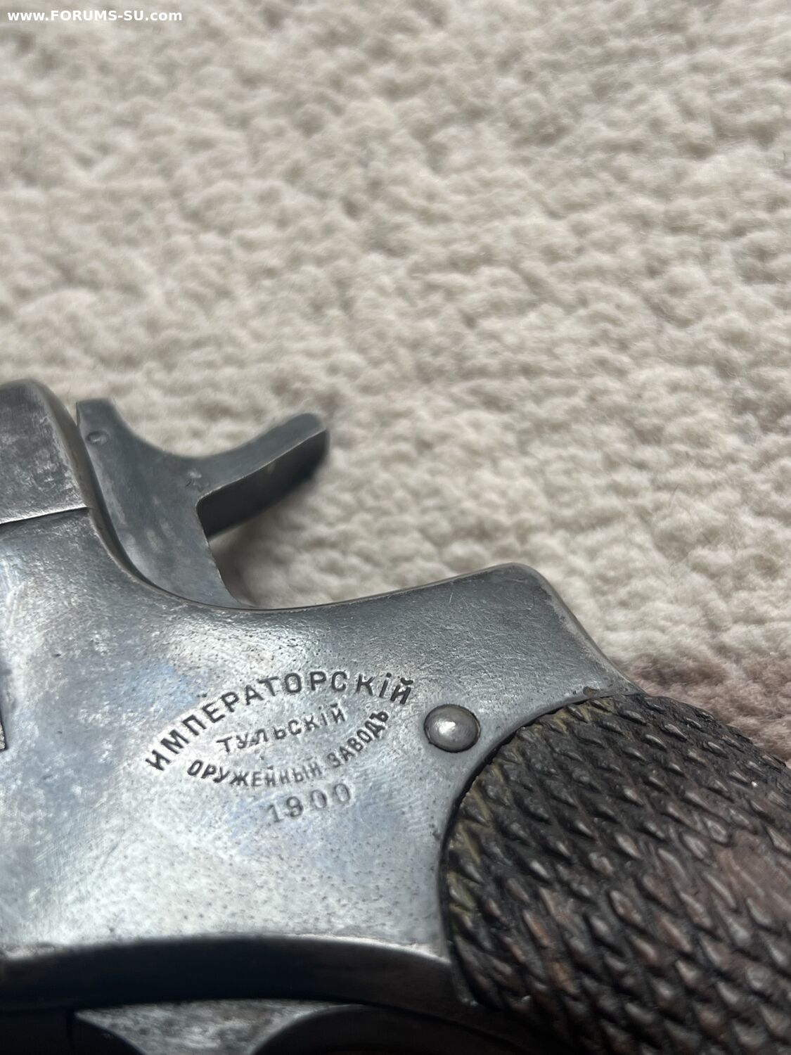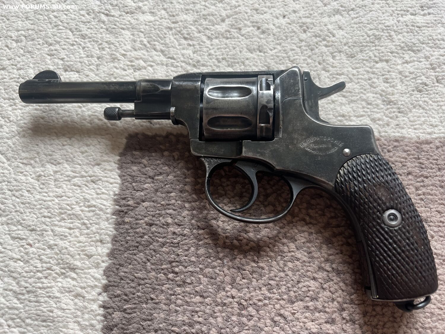 Родной номер на крышке, и на скобе. На барабане нет, так как при переделке барабанов идиоты из байкала тупо кидали их в кучу а потом ставили на рандомный наган.