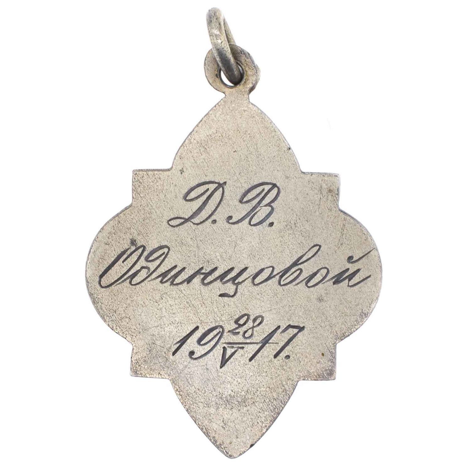 Принадлежал Д. В. Одинцовой. На оборотной стороне в три строки штихелем вырезано "Д.В. / Одинцовой / 19 28/V 17".