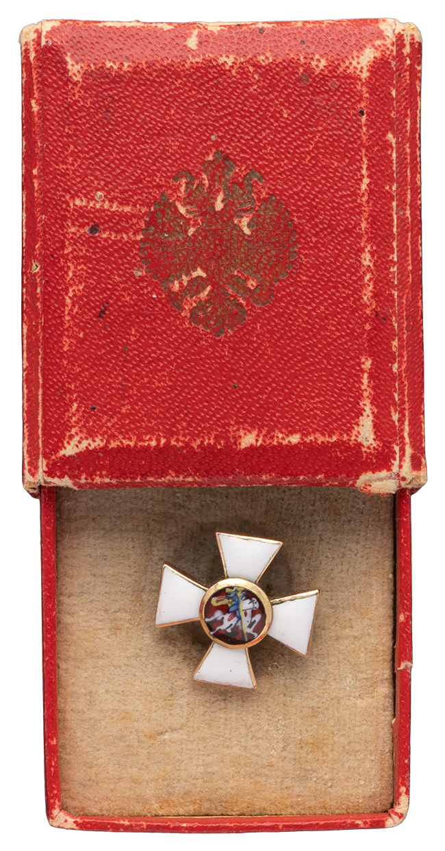 Знак ордена Святого Великомученика и Победоносца Георгия, миниатюрный, для крепления к наградному Георгиевскому оружию.