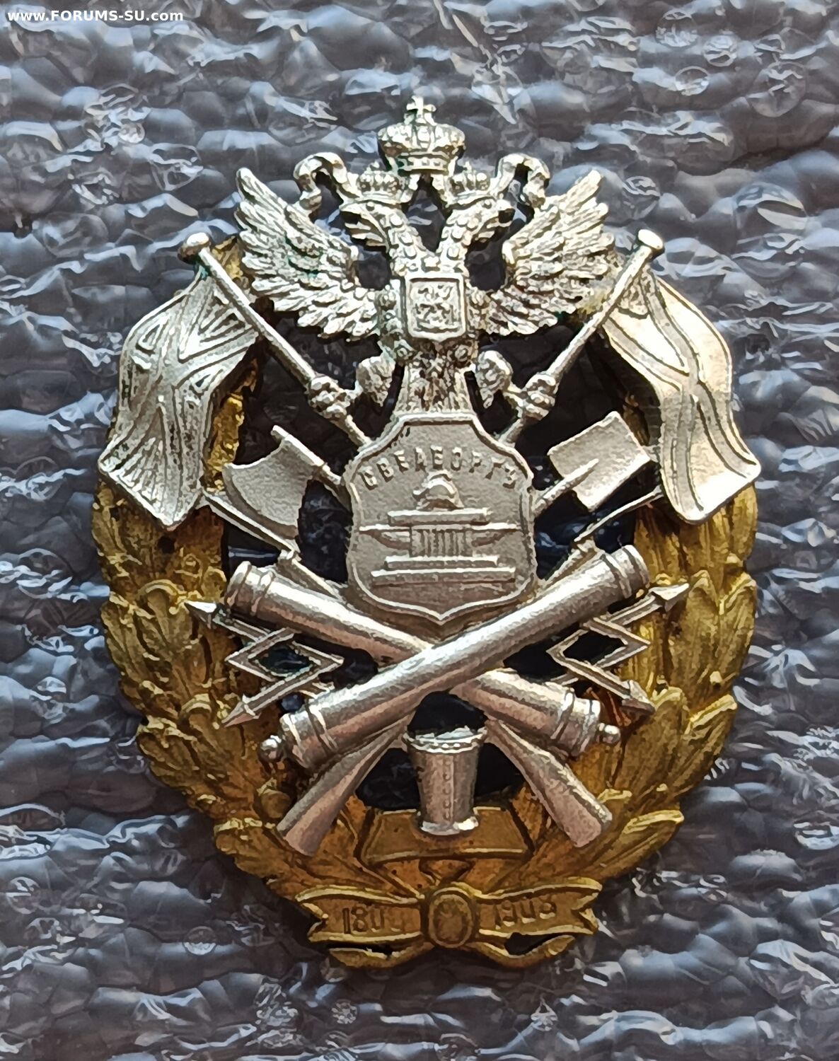 С.-Петербург, 1908–1917 гг. Фирма «Эдуард». Бронза, позолота, медно-никелевый сплав. Немного люфтит гайка. Вес 18,00 г. Размер 43,8×33,3 мм.