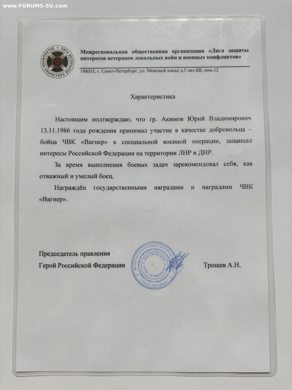 Боец был 3 раза в командировке. Первый раз как участник проекта "К", остальные два как доброволец.