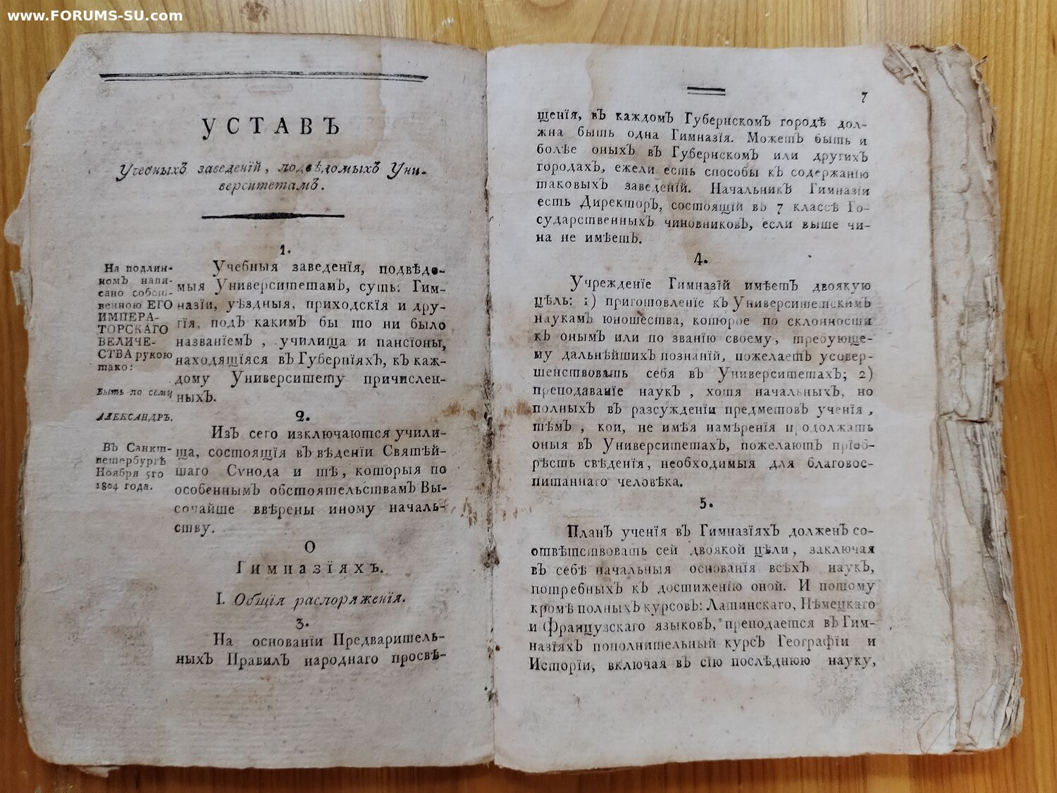 Устав учебных заведений, подведомых университетам. 1804 год. Первый устав ПРИ для учебных заведений, подписал его император Александр 1 17(5) ноября 1804 года.