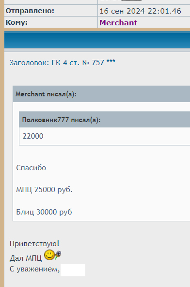 Окончание торгов завтра во вторник 17-го сентября в 21-оо мск (часы минуты форумные)+ антиснайпер 10 минут от каждой последней ставки. Шаг торгов 500 руб. Ставки в л/с далее не принимаются.