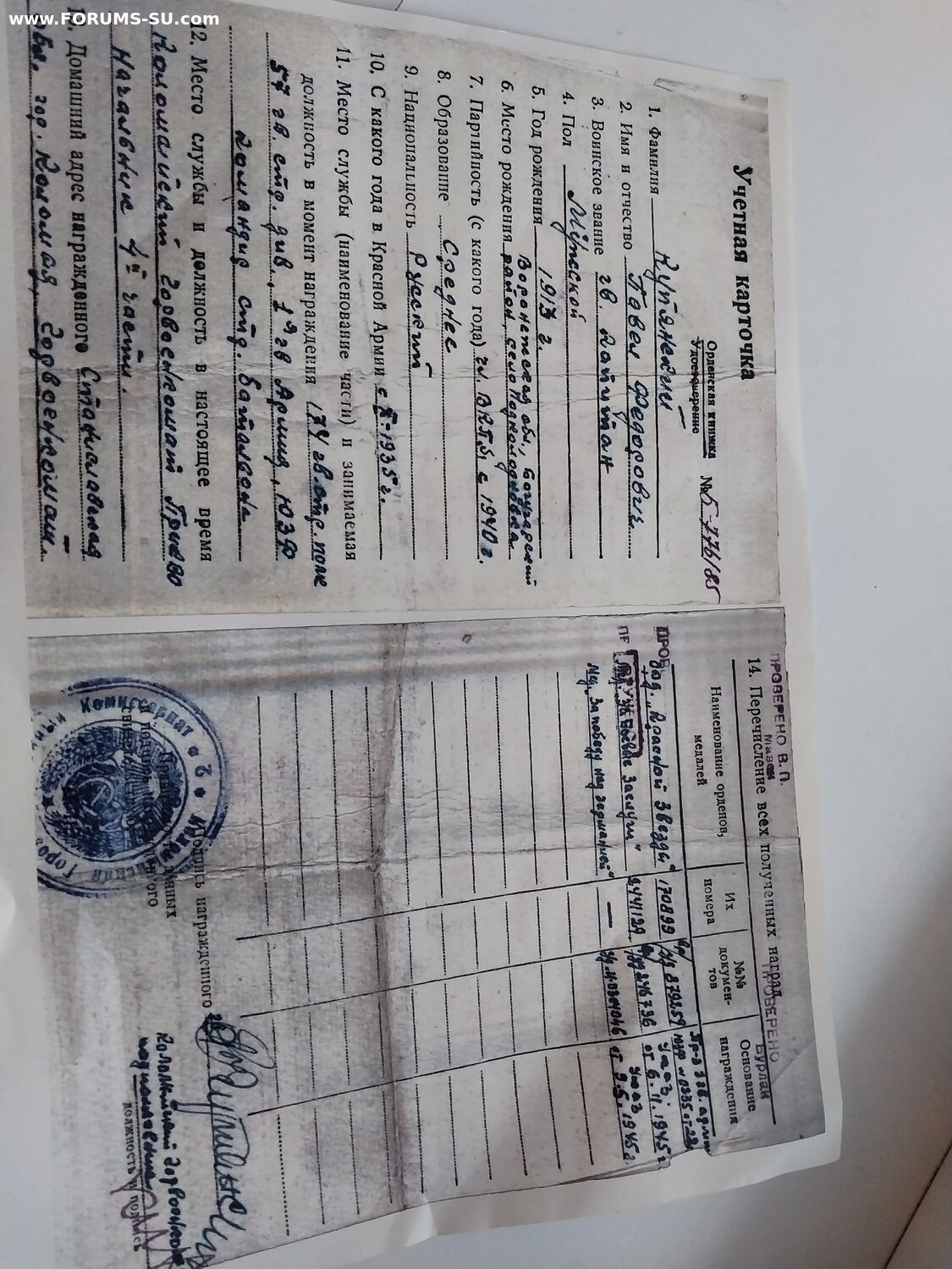 Красного Знамени, Суворова, Кутузова, Богдана Хмельницкого, Александра Невского, Ушакова, Нахимова, Отечественной Войны, Красной Звезды, Славы, За Службу Родине в ВС СССР