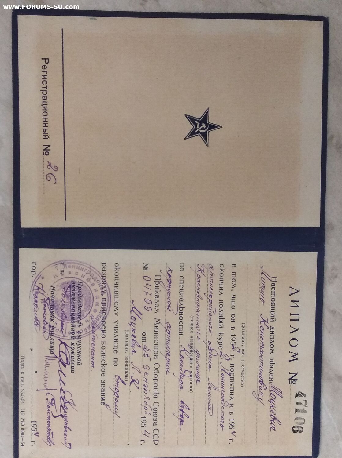 Диплом 2го Ленинградского Артиллерийского училища elena72 - 29 сен 2024 18:21.49 × Мини профиль пользователя elena72 Сообщения: 3663 Зарегистрирован: 07 мар 2013 19:48.42 Статус: Не в сети - 29 сен 2024 18:21.49 #6806578 Присвоено звание лейтенанта 1954гМпц 1000 руб Пересыл по РФ на Вас Фото