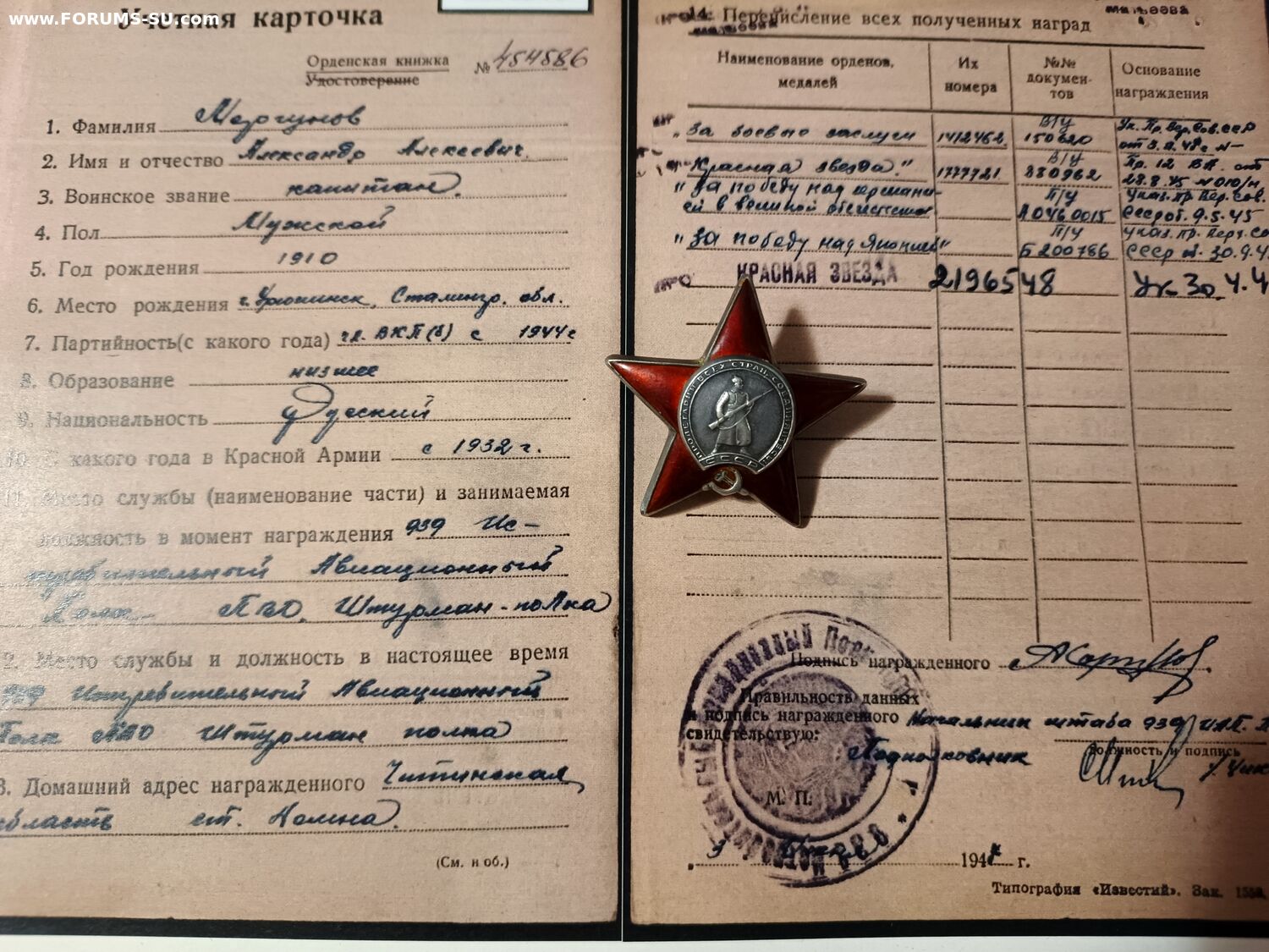 Красного Знамени, Суворова, Кутузова, Богдана Хмельницкого, Александра Невского, Ушакова, Нахимова, Отечественной Войны, Красной Звезды, Славы, За Службу Родине в ВС СССР