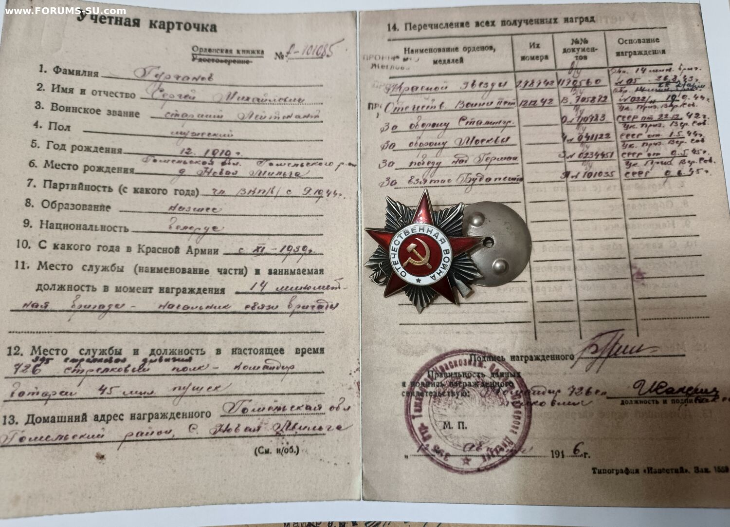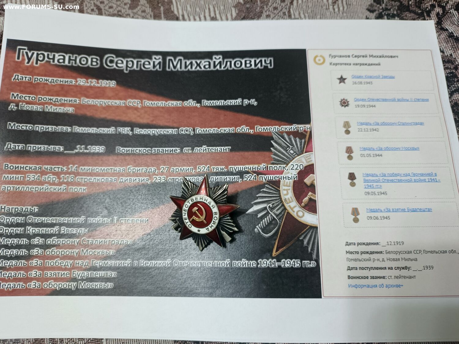 Красного Знамени, Суворова, Кутузова, Богдана Хмельницкого, Александра Невского, Ушакова, Нахимова, Отечественной Войны, Красной Звезды, Славы, За Службу Родине в ВС СССР