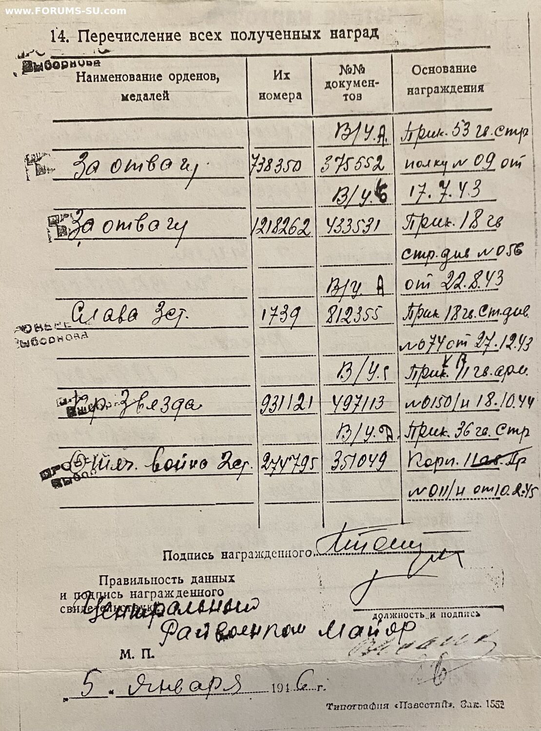 Помощь в пробивке наград СССР