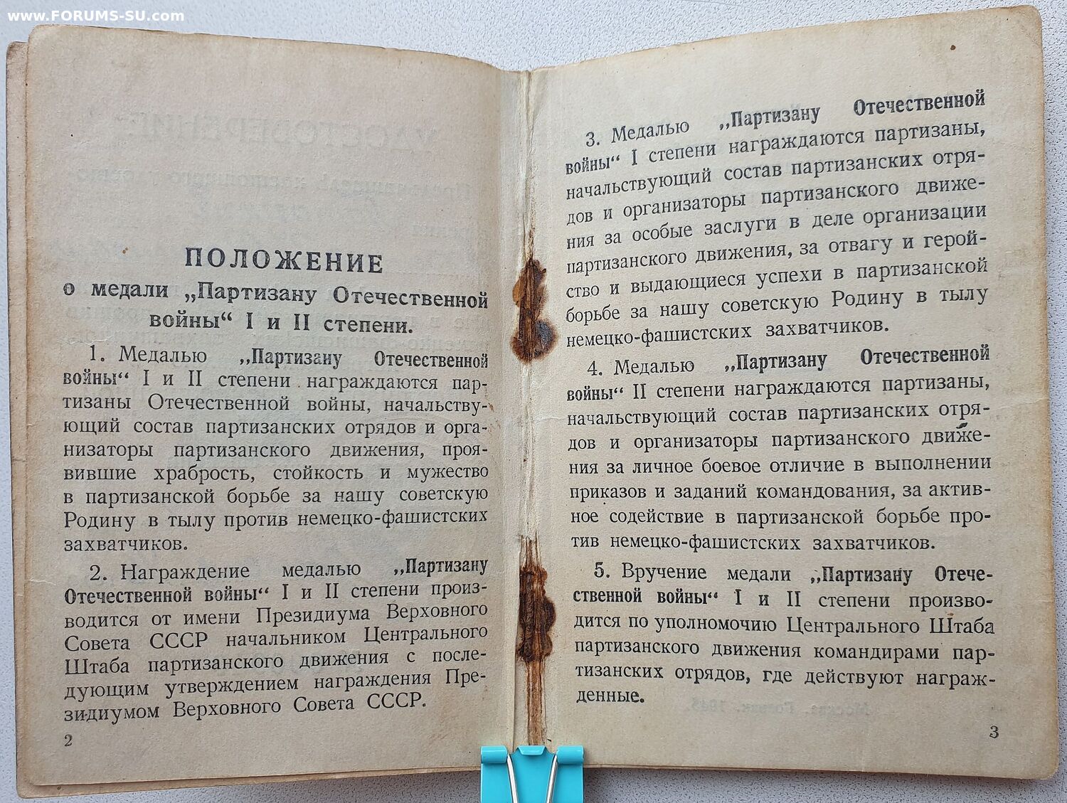 Удостоверение к медали подклеено.