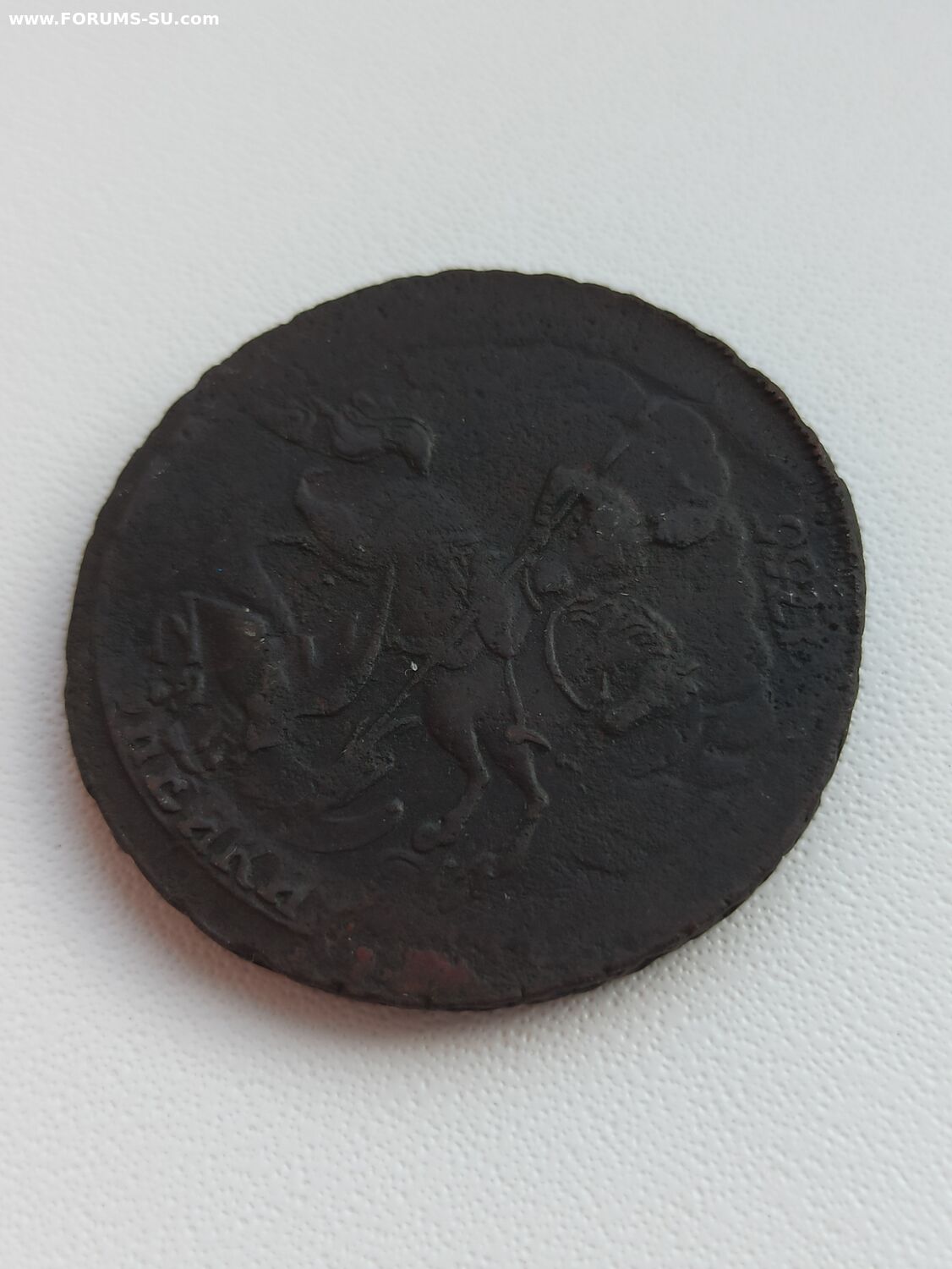 Две копейки 1757 года перечекан из Облачной копейки 1755 года.