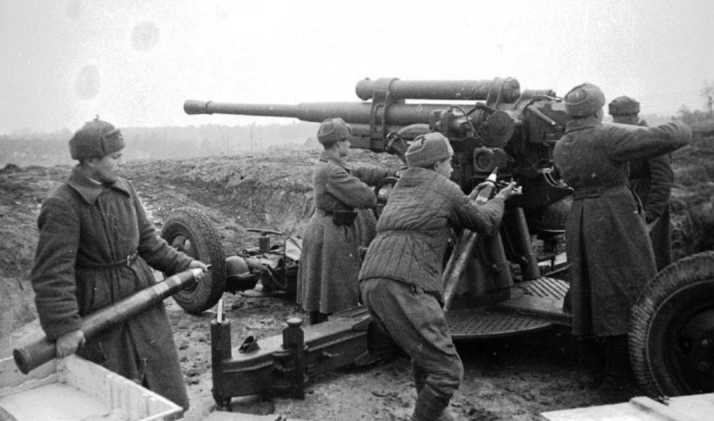 Расчет 85-мм зенитного орудия на боевой позиции27.06.1943 во исполнение приказа 20 зад полк передислоцировался в район ст. Крымская с задачей охраны боевых порядков артиллерии и частей расположенных в районе ст. Крымская.