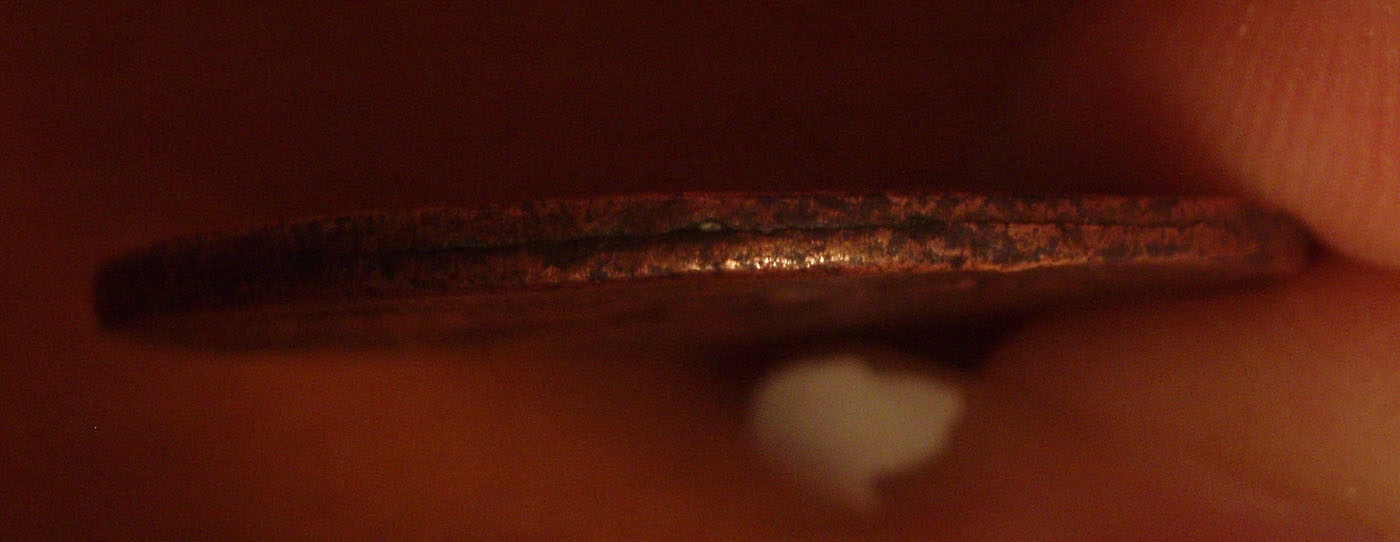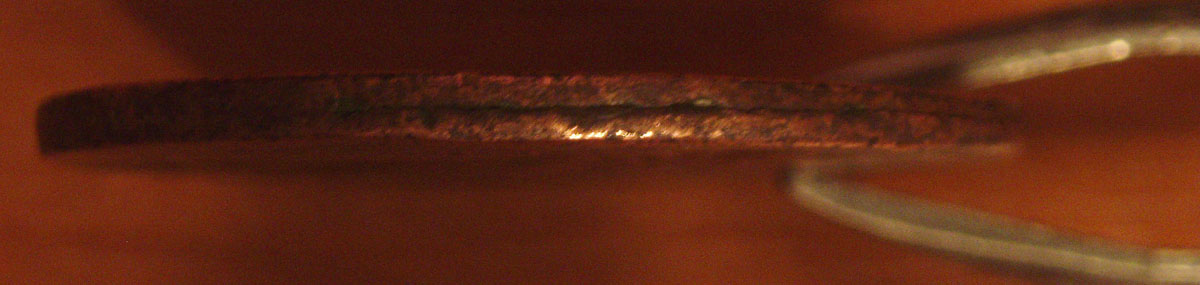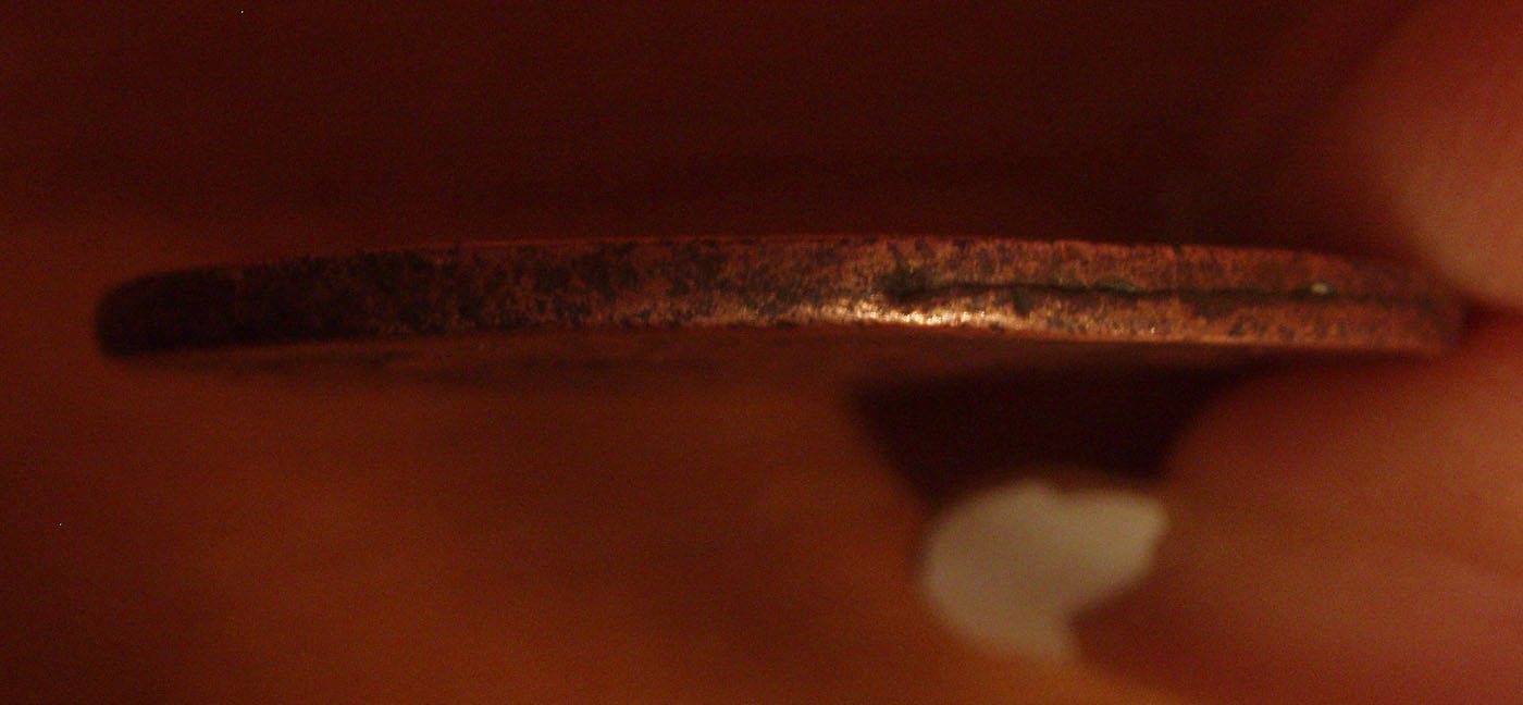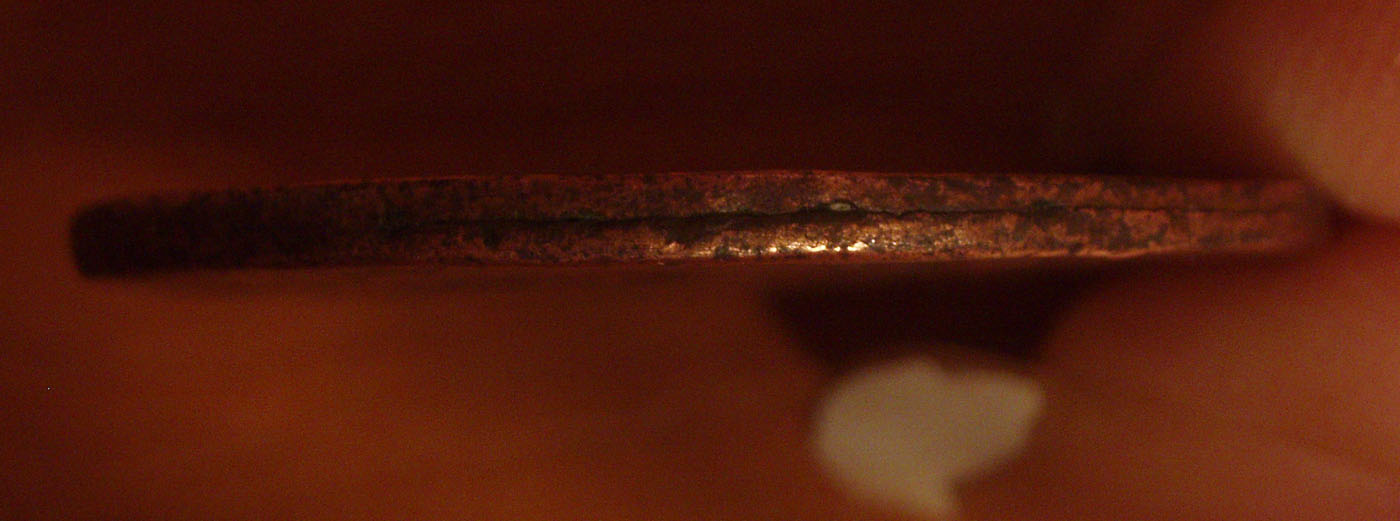 Может я ошибаюсь,но то что монета не звенит,расплывчатые детали и вроде из двух частей состоит ,определенный фрагмент гурта доказывает это.Кому интересна фальш того времени-старт 20$