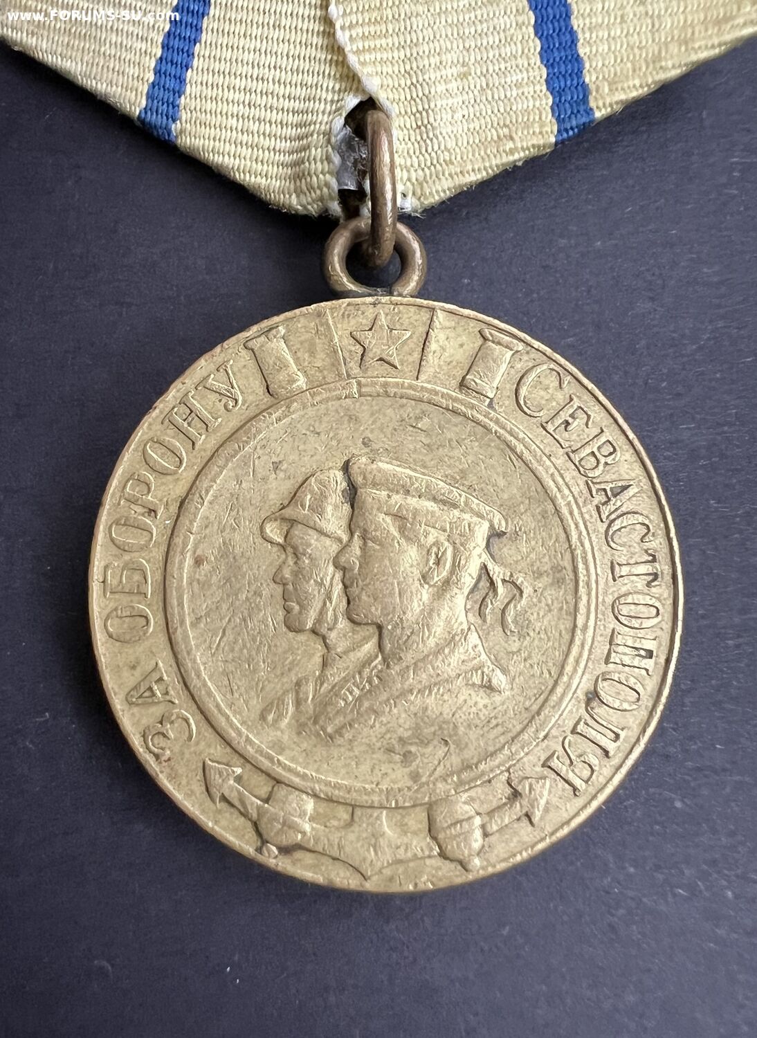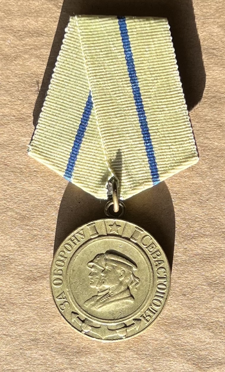 Медаль «За оборону Севастополя» военного вручения-разновидность с паянным ушком.