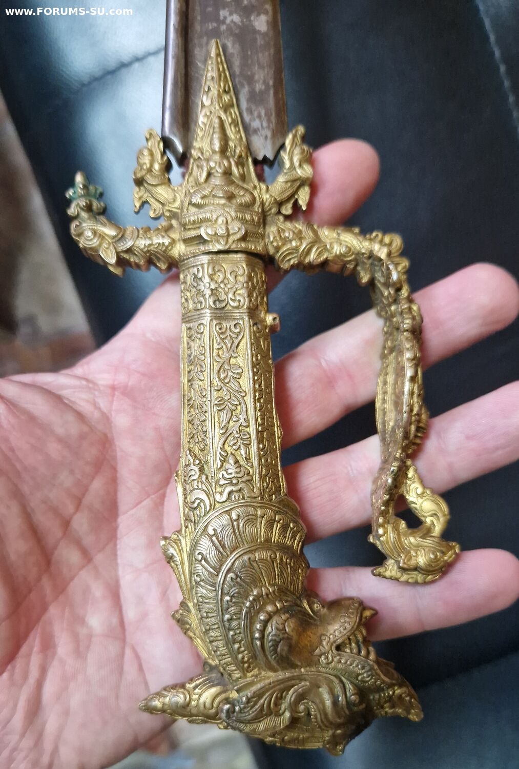 - Клинок немного изогнут и заточен с одной стороны, как у обычной сабли.