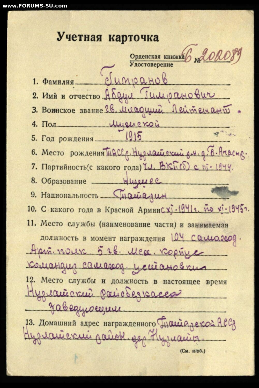 Красного Знамени, Суворова, Кутузова, Богдана Хмельницкого, Александра Невского, Ушакова, Нахимова, Отечественной Войны, Красной Звезды, Славы, За Службу Родине в ВС СССР