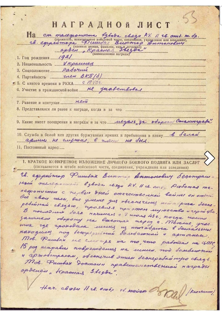 Тов. Фишбах проявил исключительную храбрость под огнем и бомбежкой противника исправил 15 повреждений на линии. Сохран на фото. Утрата луча на 12ч. Почта 400. Мпц 8500. Если с родной от нее гайкой серебрянной + 1500.