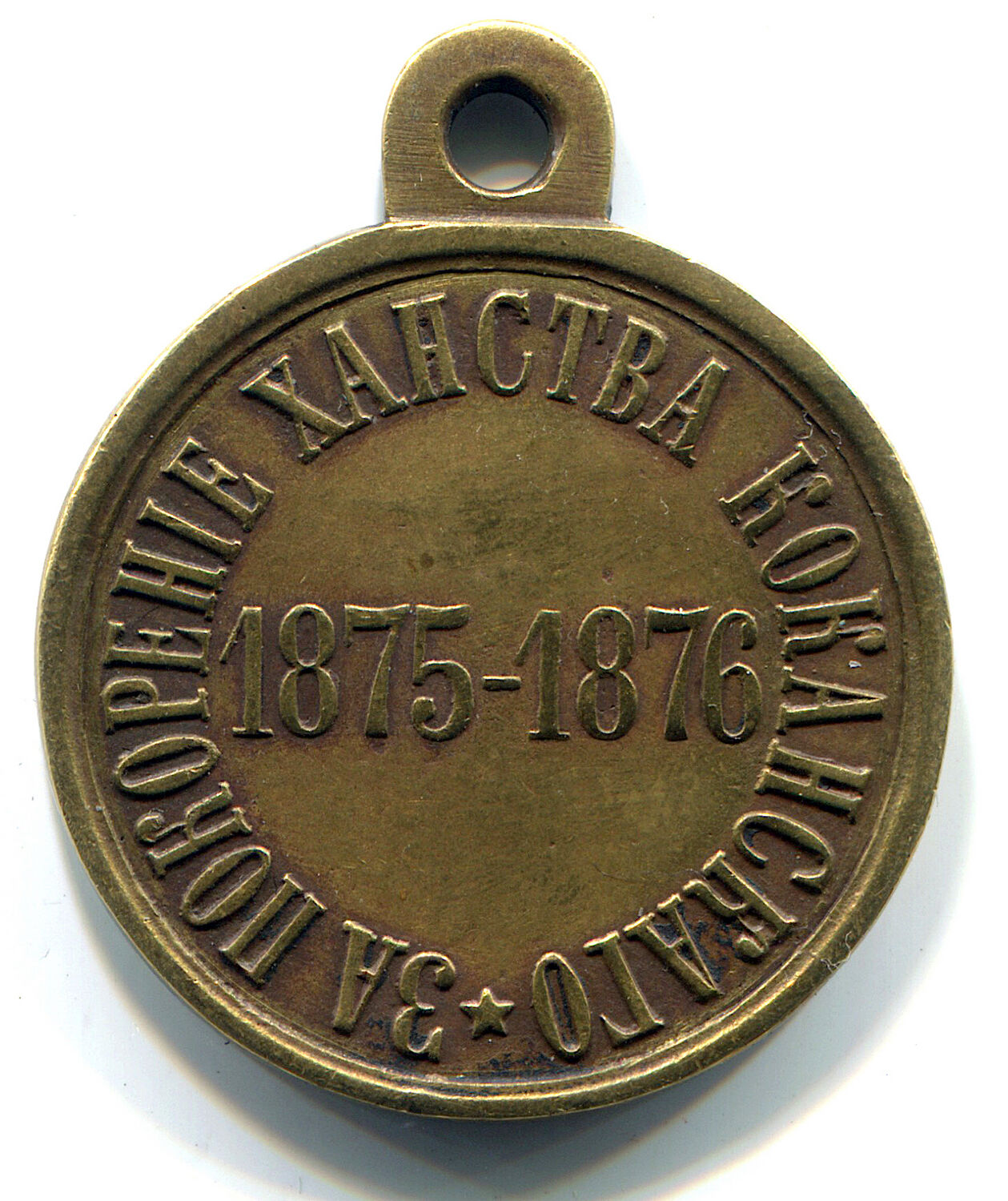 Учреждена указом Императора Александра II, данным военному министру Д.А.Милютину 26 ноября 1876 г. Медалью награждали: 1) всех генералов, штаб и обер-офицеров, строевых и нестроевых нижних чинов Туркестанского военного округа, с 6 августа 1875 г. по 15 сентября 1876 г. участвовавших в занятии и покорении бывшего Кокандского ханства; 2) священников и медицинских чиновников, находившихся при войсках; 3) состоявших при войсках во время похода чиновников военного и гражданского ведомств; 4) находившихся при войсках волонтеров и джигитов, вольнонаемную прислугу и лиц всех сословий, оказавших во время похода военные отличия или какие-либо заслуги.