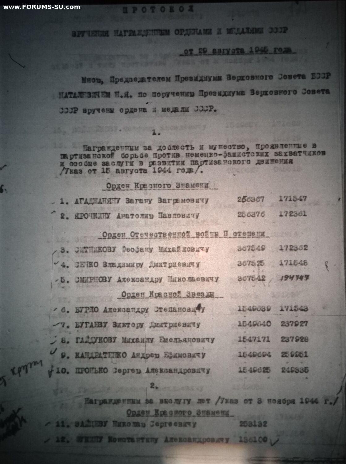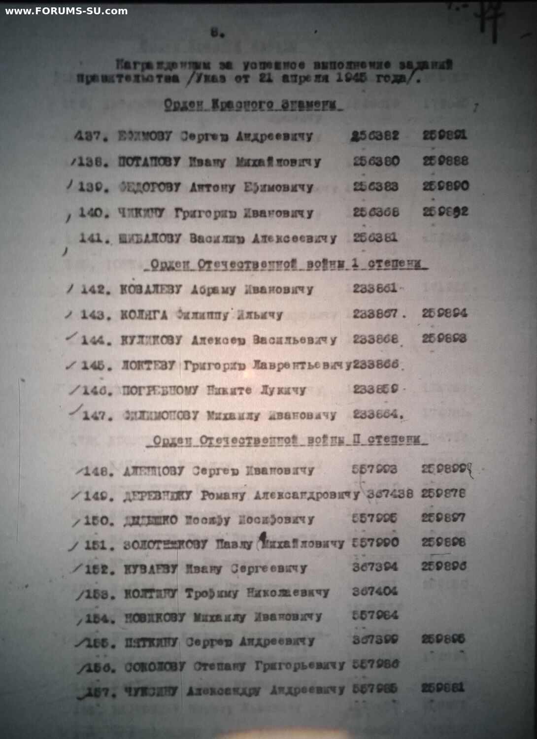 Вот такая КЗ попалась. Указ ПВС СССР от 21 апреля 1945 г.