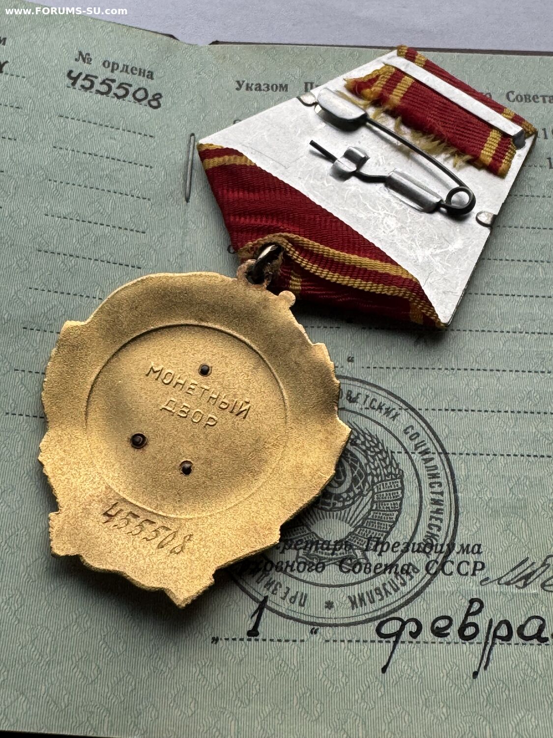 Орден Ленина на документе № 455 508